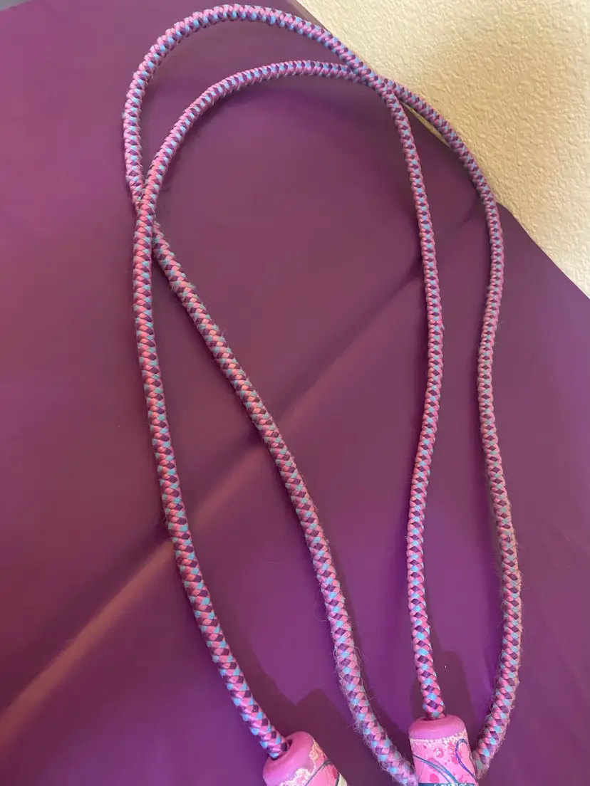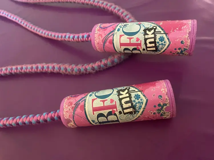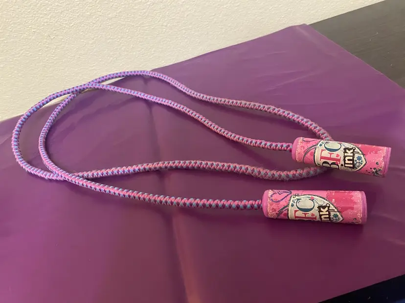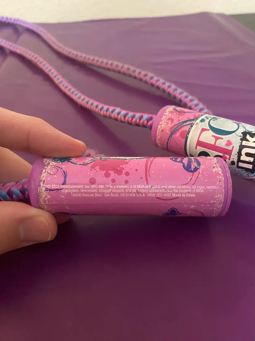 You are purchasing one Pink, Purple & Blue BFC Ink Girl's Jump Rope by MGA Entertainment. This Jump Rope is in good condition with minor wear, mostly on handles as seen in the photos. No cracks or chips on the plastic, no rips or stains in the Rope.