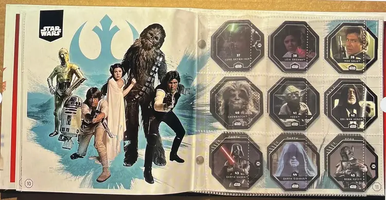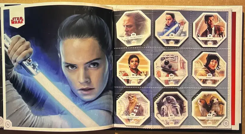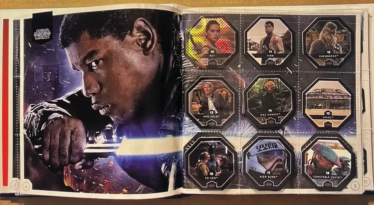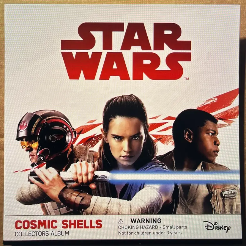 This is a rare Bi-Lo exclusive Star Wars Cosmic Shells Collectors album featuring character shells from Star Wars VII:The Force Awakens. Released in 2017, this collectible item is perfect for anyone who loves Star Wars and is a collector. I have all the shells for this binder, including extra duplicates.