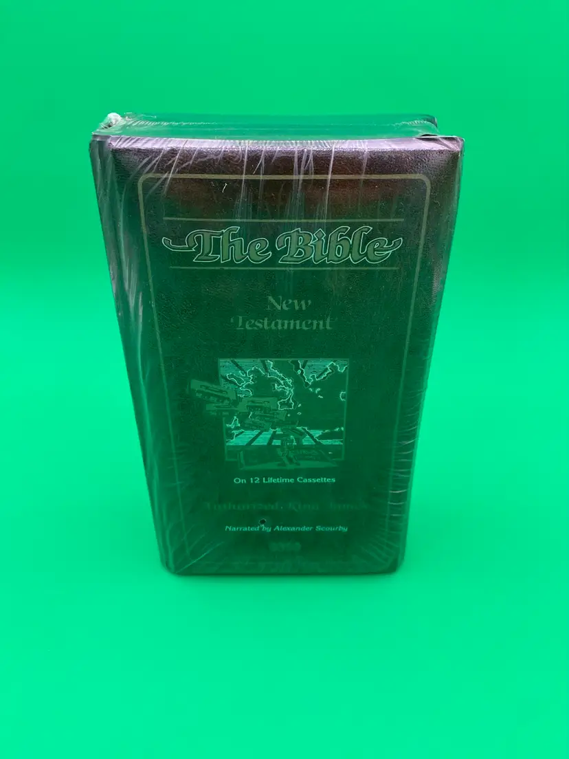 You are purchasing one The Bible New Testament Authorized King James version 12-Lifetime Cassette Set Audiobook by Alexander Scourby from 1974. This Set is new and sealed in its original packaging.