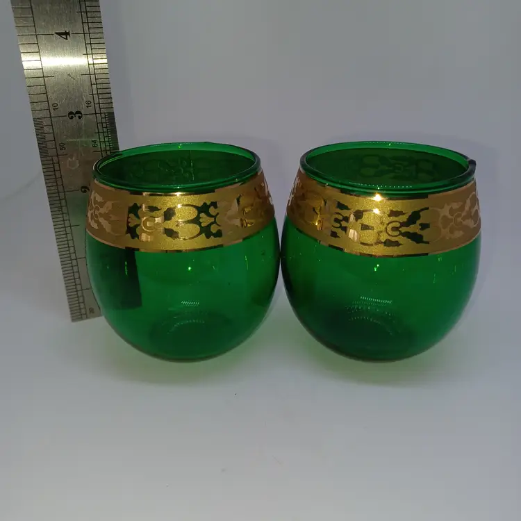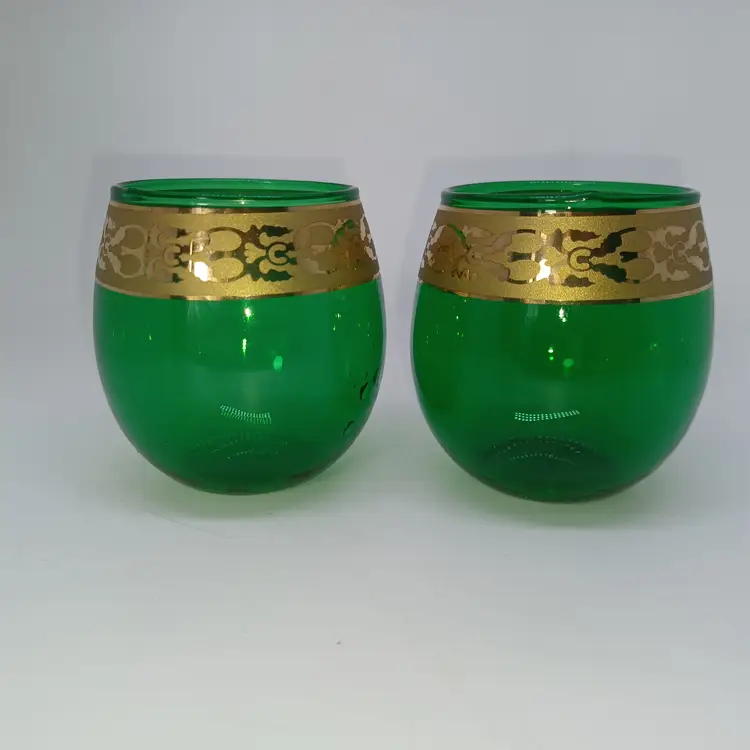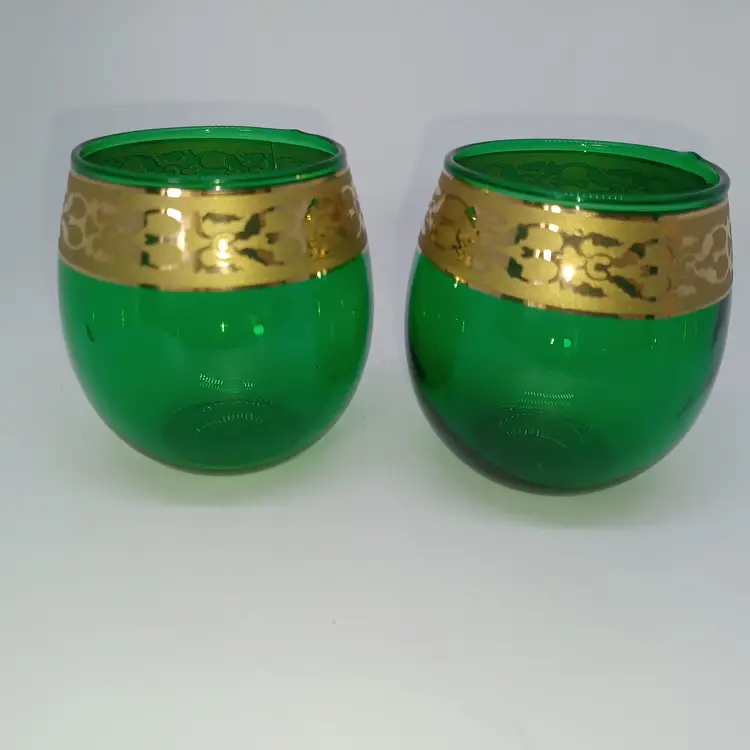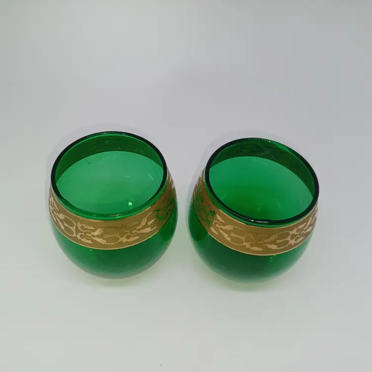 Biedermann & Sons Green Glass Tealight Candle Holder with Gold Trim Biedermann & Sons Green Glass Tealight Candle Holder with Gold Trim