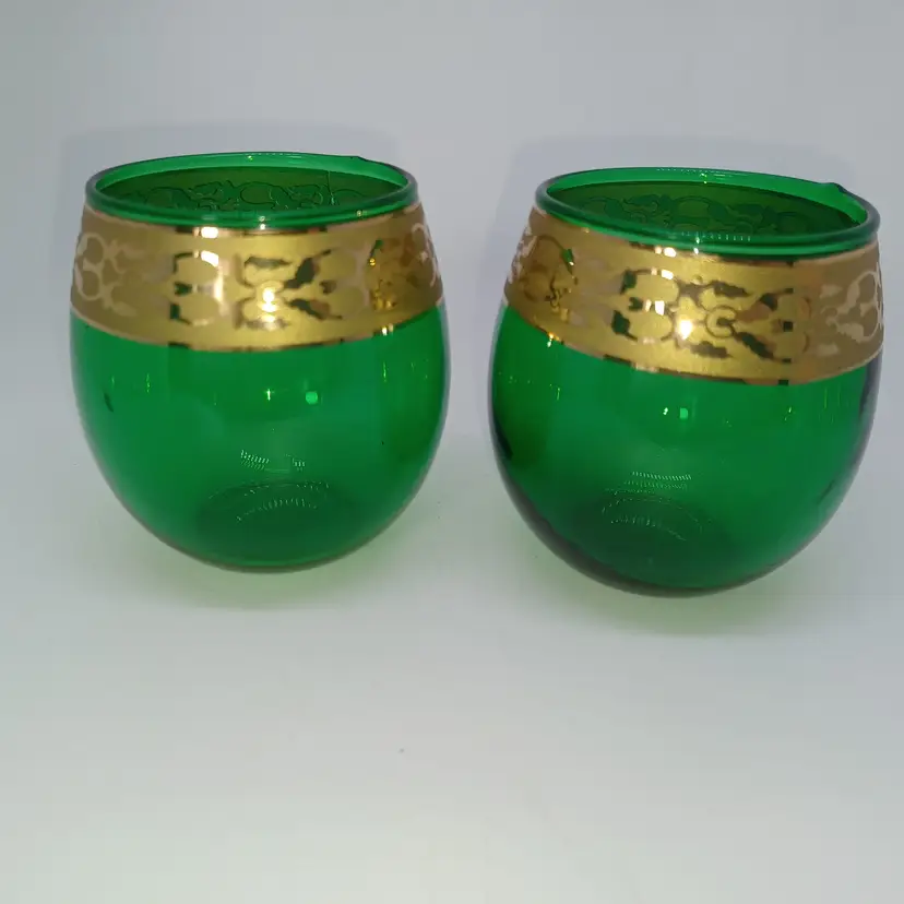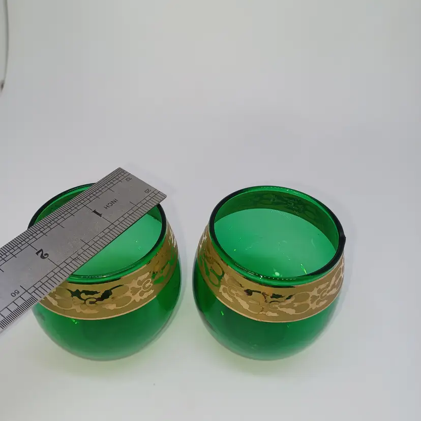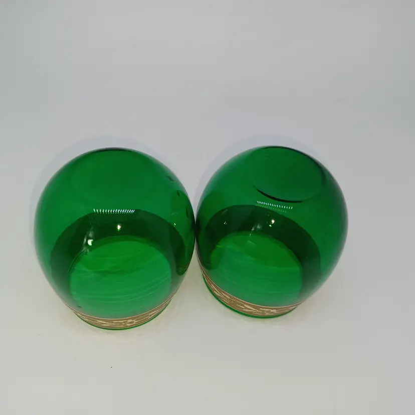 green glass candle holders