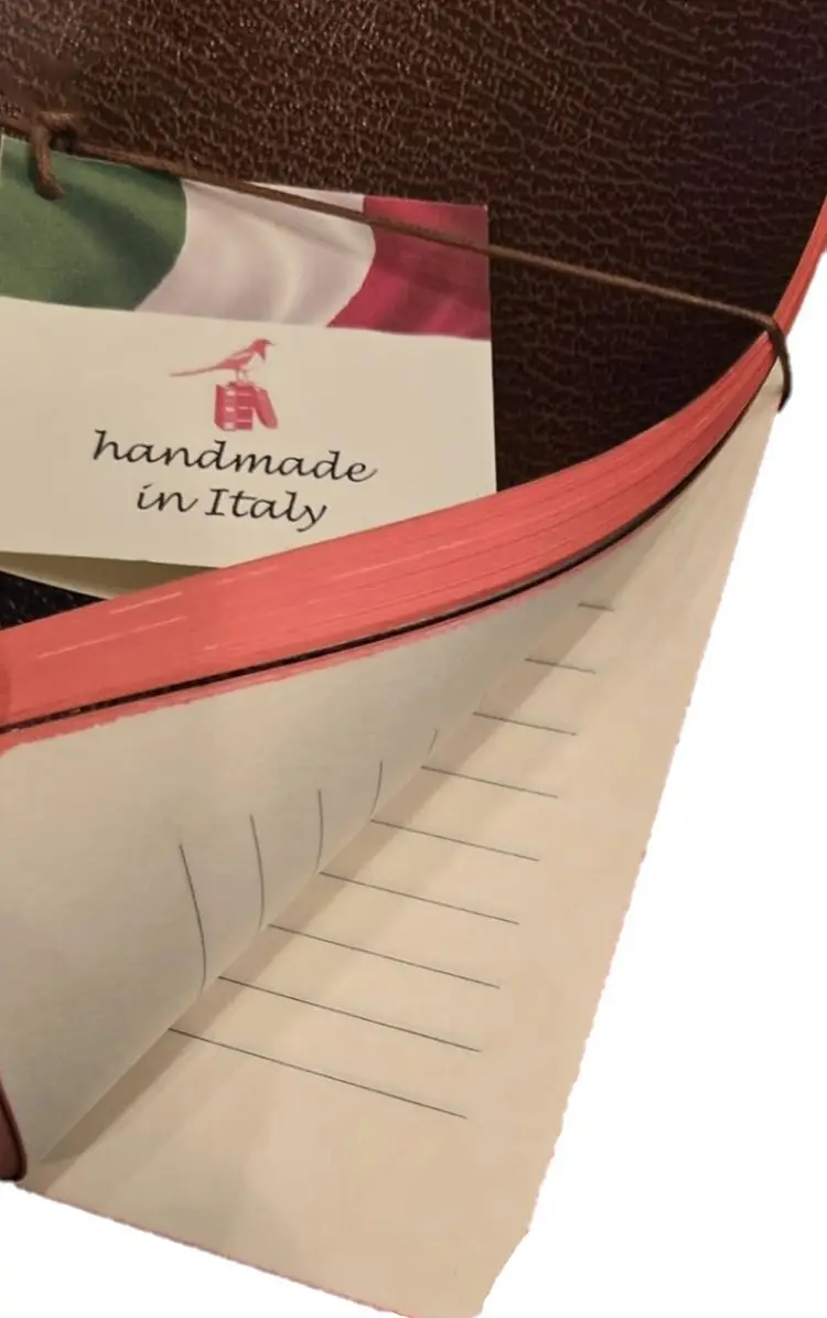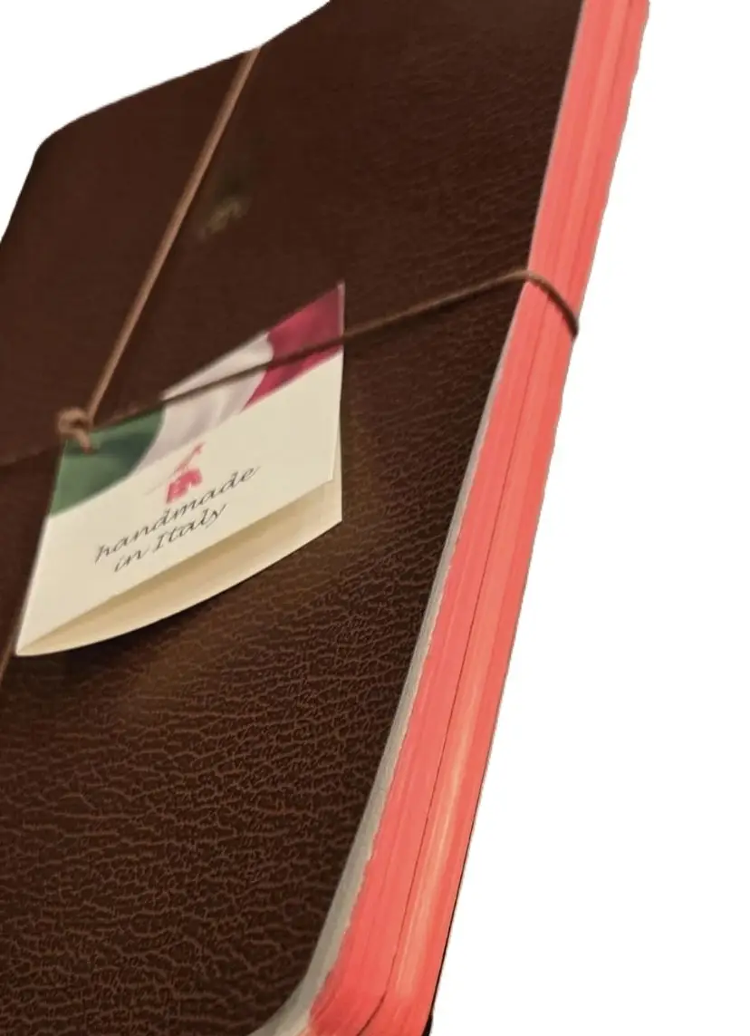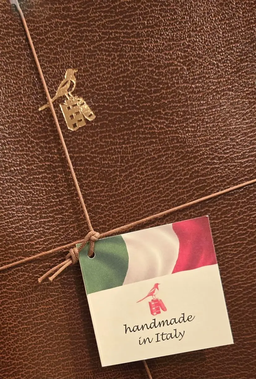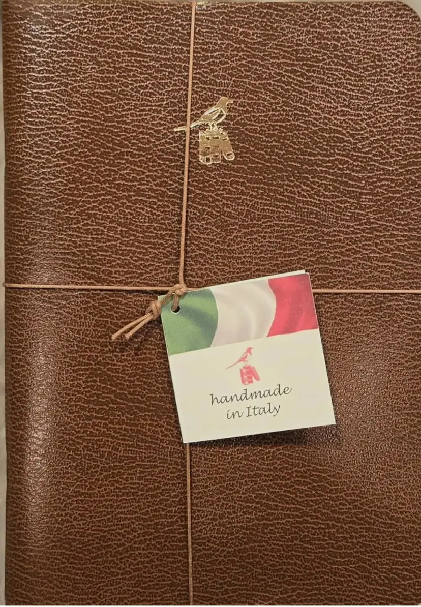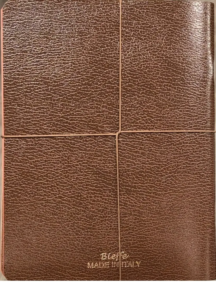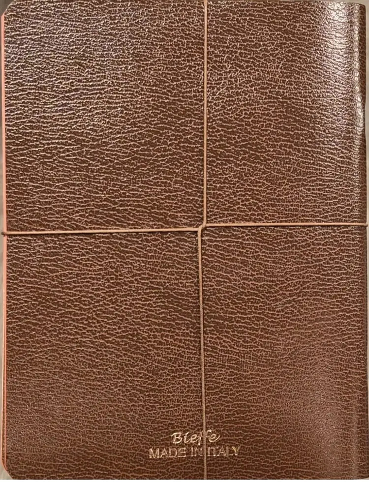 Set of 2 Bieffe Handmade in Italy notebooks, featuring 60 pages of lined paper per notebook and faux leather covers. Crafted in Italy following traditional Italian bookbinding techniques. Ideal for journaling, note-taking, or as a diary. Measures 8" x 5.5" Makes a great gift.