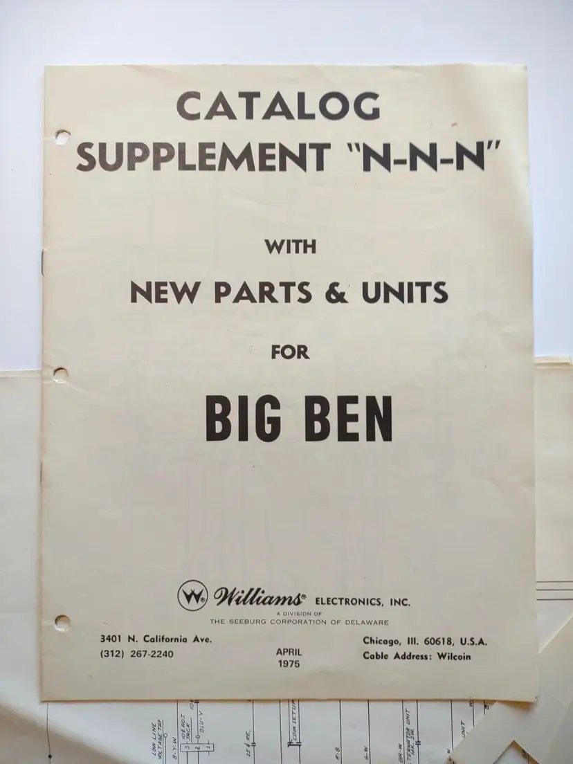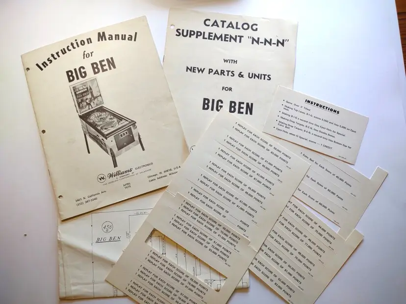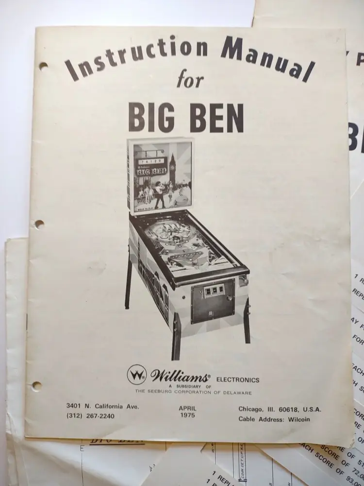 Brand: Williams Year: 1975 Model: Big Ben Country/Region of Manufacture: United States Pinball: Paperwork