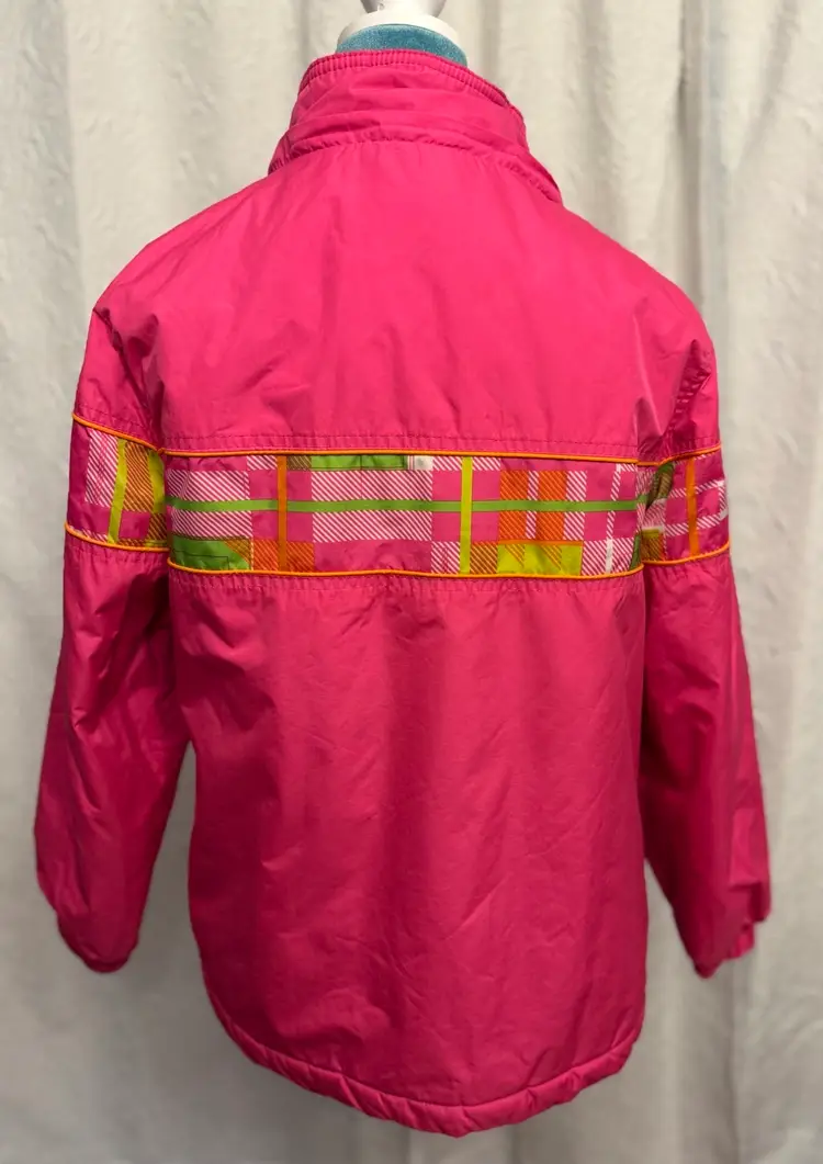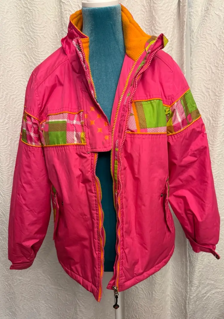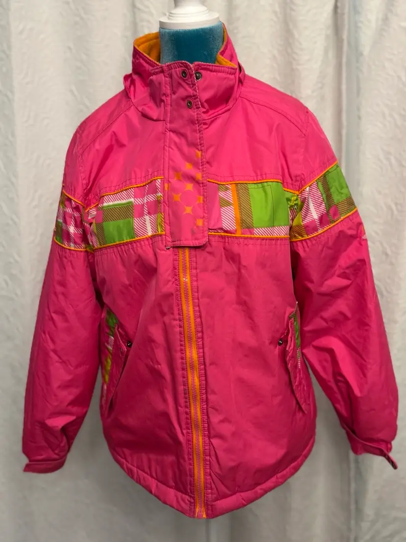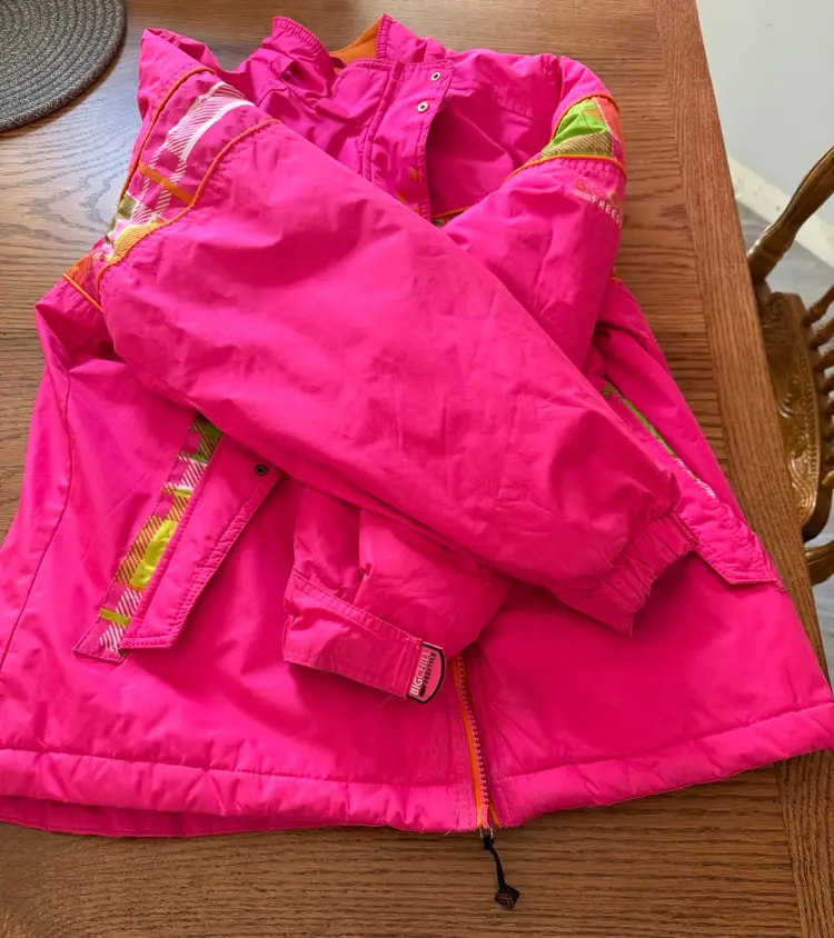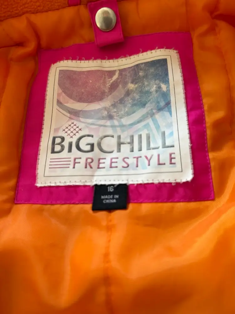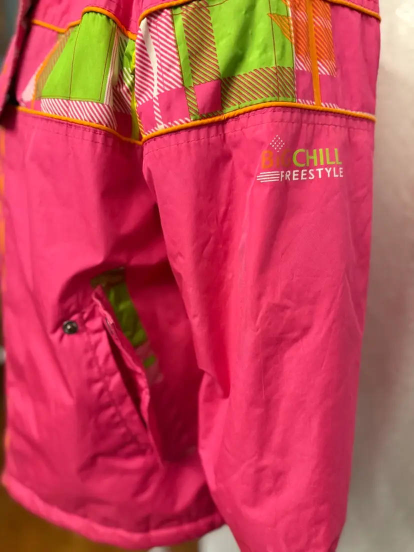 This eye-catching puffer jacket from Big Chill combines vibrant pink with striking green accents, offering a bold style statement. Designed for warmth and comfort, it features a high collar for added protection against the elements. Measurements: shoulder to bottom of the coat is 24 1/2". The pit is 19 1/2 " from armpit to the bottom of the sleeve is 16".
