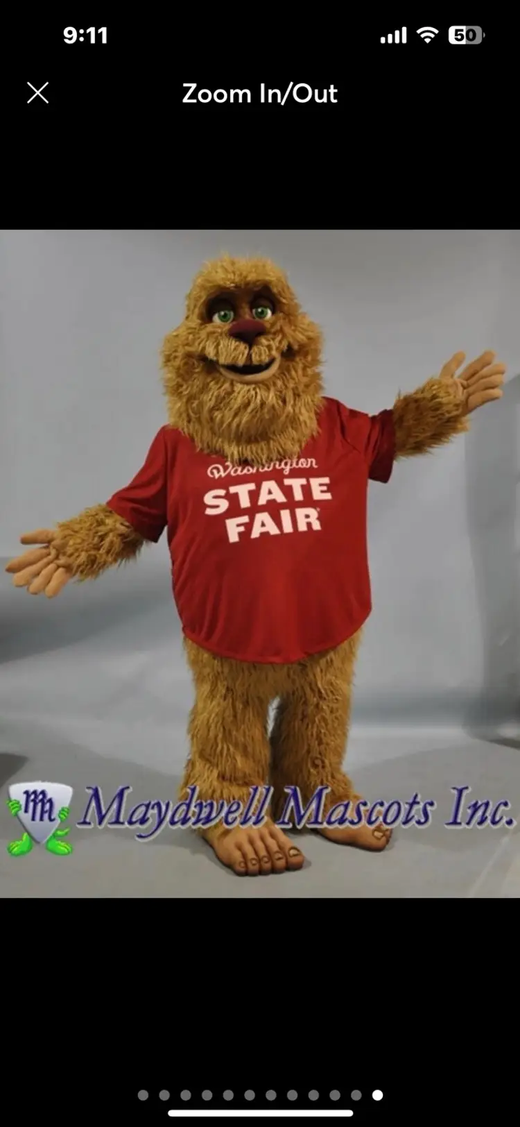 Adorably dressed in his state fair overalls, this Bigfoot or Sasquash, or Samsqanch if your Canadian. I’ll just call him cute, and hopefully you will call him yours! Last few pictures are of actual mascot.