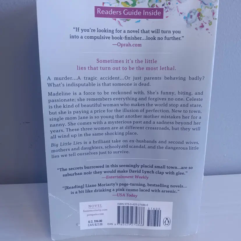 Book was made into movie starring Nicole Kidman & Reese Witherspoon Shows very mild edgewear; binding is tight and pages are clean