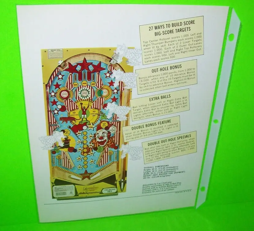 Modified Item: No Country/Region of Manufacture: United States Year: 1974 Brand: Bally Model: Big Show Pinball: Flyer