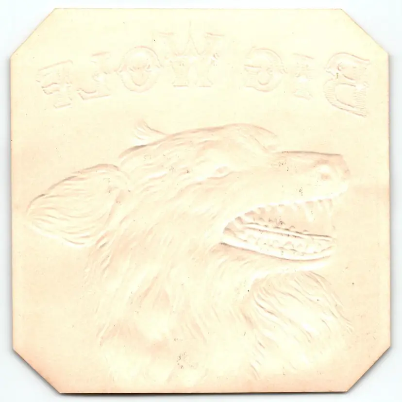 Striking embossed graphics on this 4.5" x 4.5" unused new old stock condition cigar box product label. Super clean vintage condition.