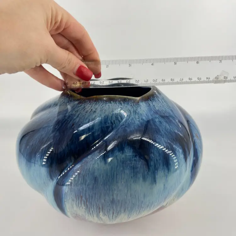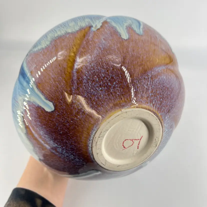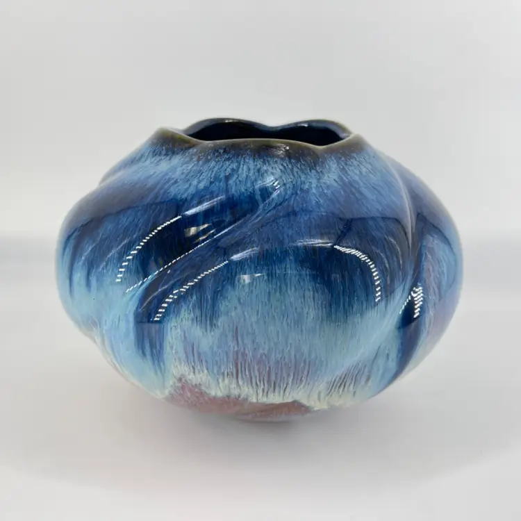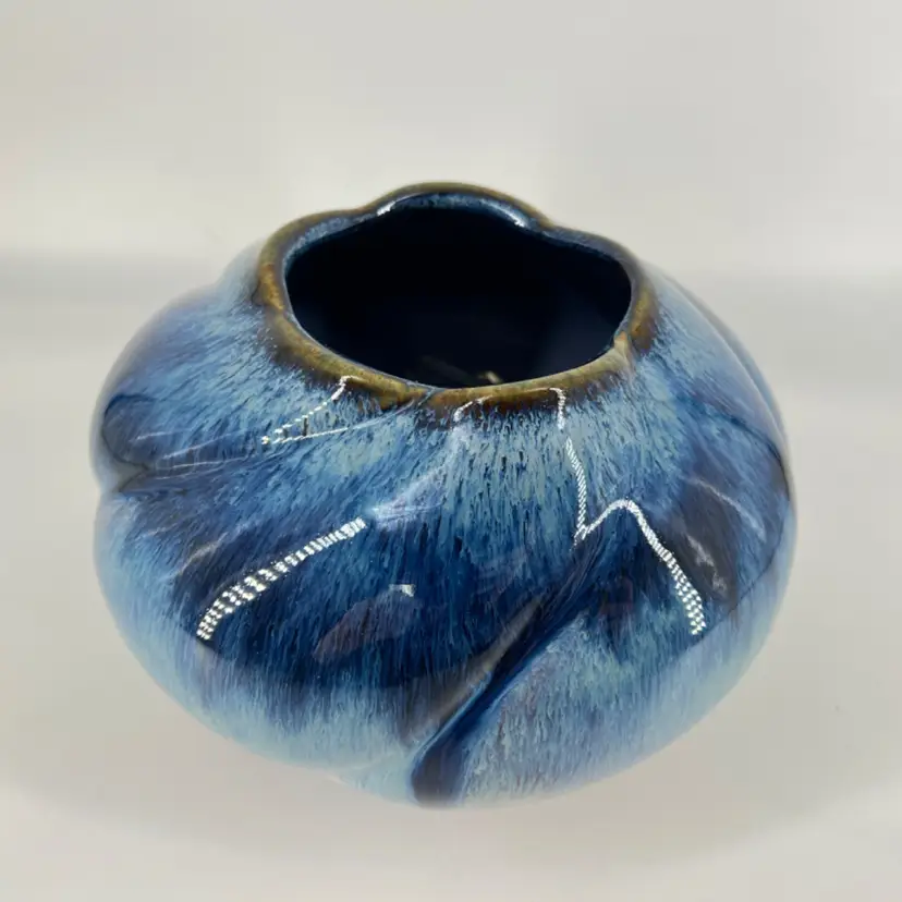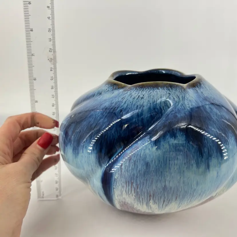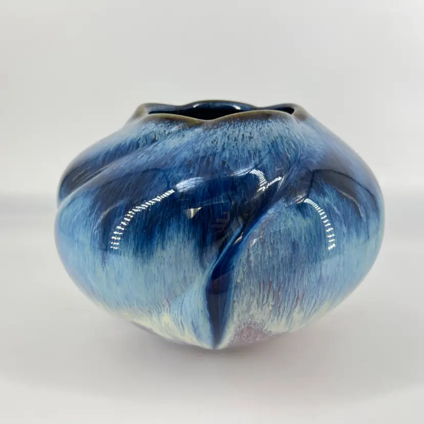 This pottery vase is signed by Bill Campbell. It measures 6” tall and 4” wide at the opening. There are no chips or cracks.