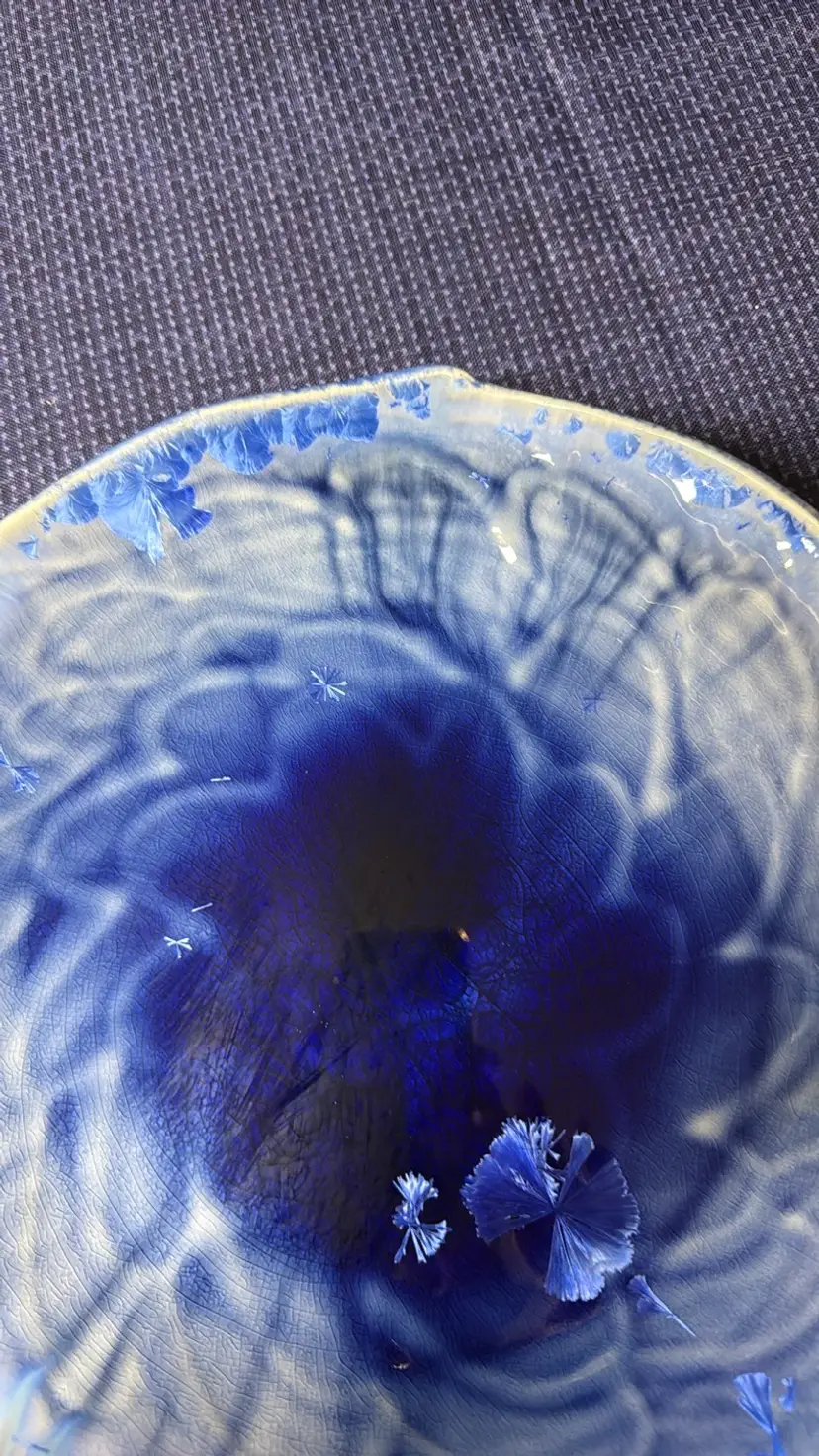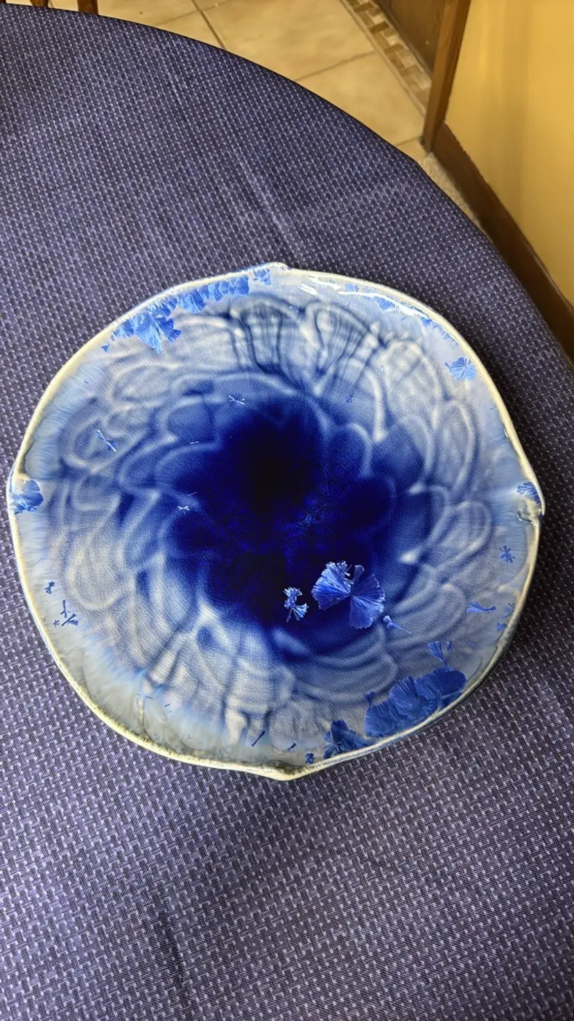 Bill Campbell pottery platter blue crystalline glaze 13.25” diameter 1.75” depth Absolutely Gorgeous Excellent condition no breaks or chips