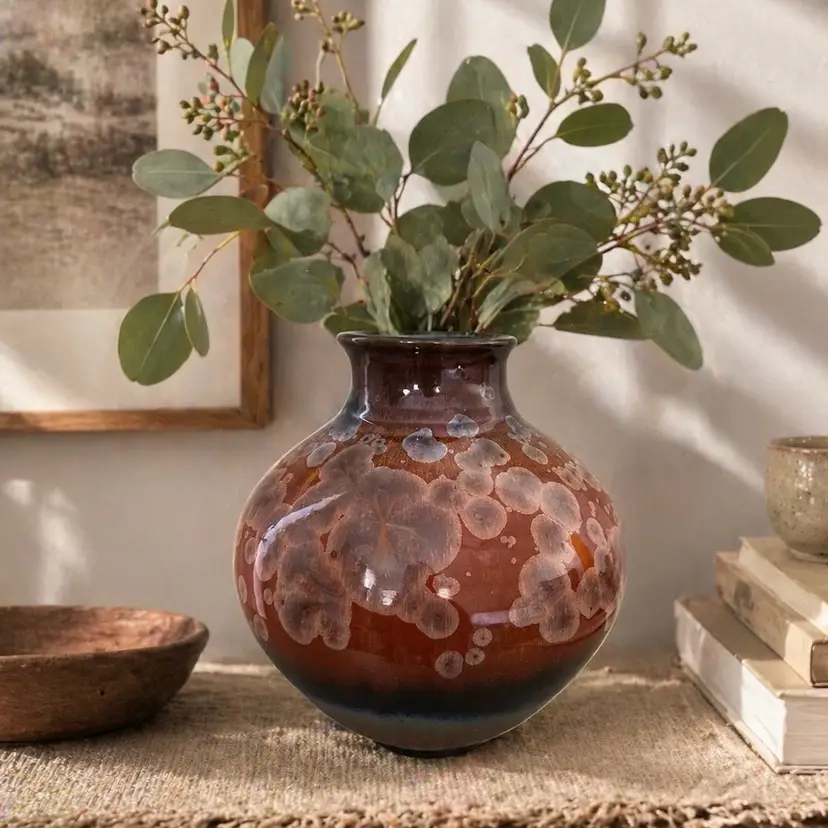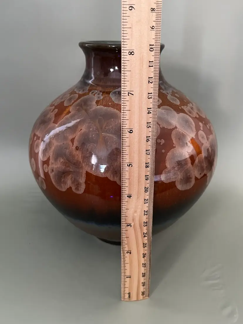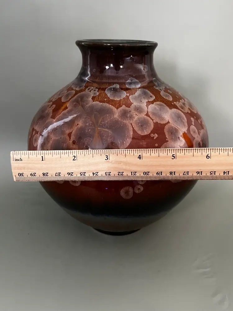 Details: • Maker: Bill Campbell • Origin: American studio pottery • Material: Stoneware • Finish: Rust red / brown crystalline glaze • Signature: Incised “Bill Campbell” on base • Era: Mid- to late-20th century • Condition: Excellent vintage condition with no chips or cracks noted