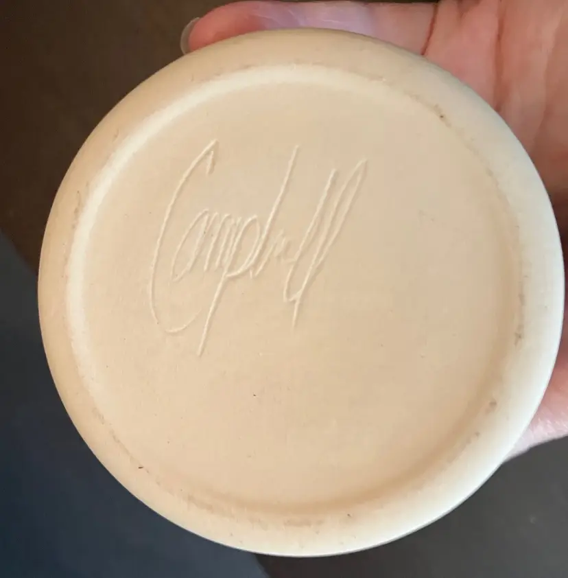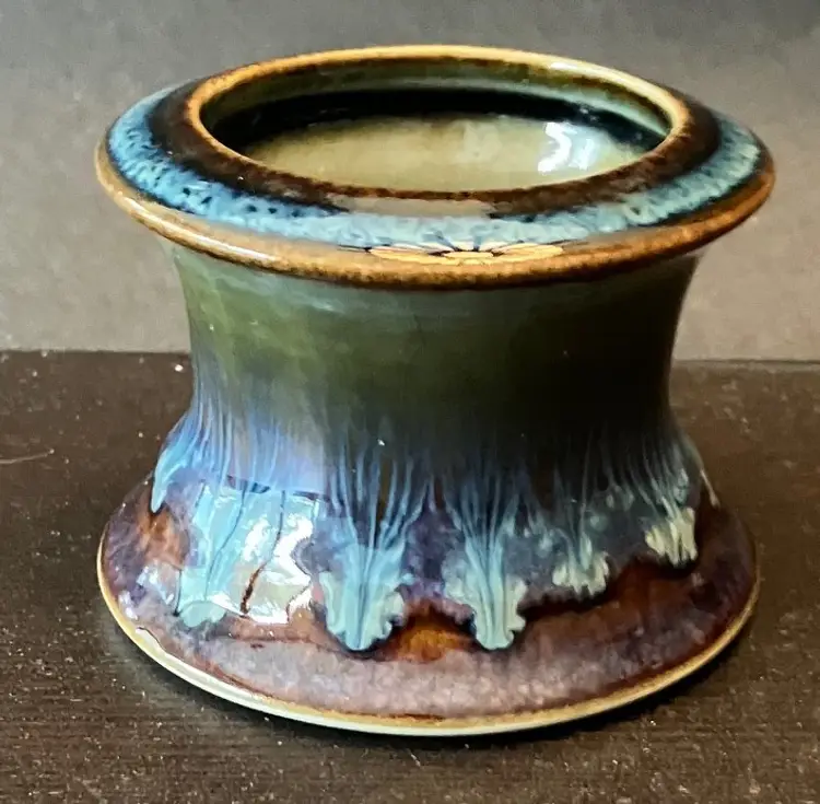 In excellent condition. No chips or cracks. Signed. Double drip. Measurements: Approximately 3" in diameter and 2" tall.