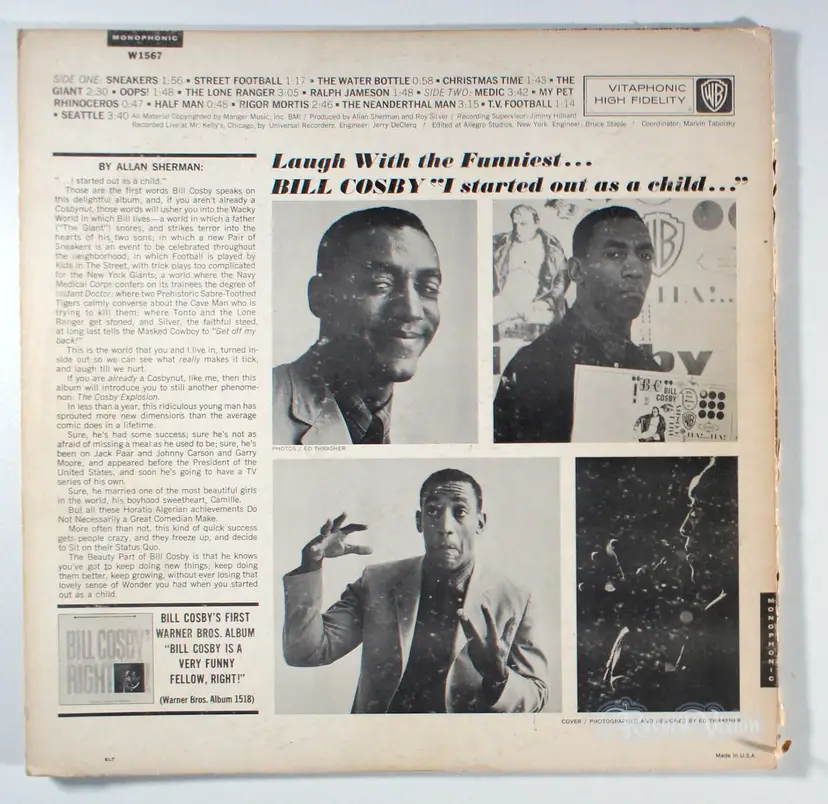 I Started Out as a Child, by Bill Cosby, was the first Cosby album to feature his childhood memories in his comic routines, but many of the tracks are still observational humor. The album was recorded live at Mister Kelly's in Chicago, Illinois, the album won the Grammy Award in 1965 for Best Comedy Album. It was added to the National Recording Registry in 2009.