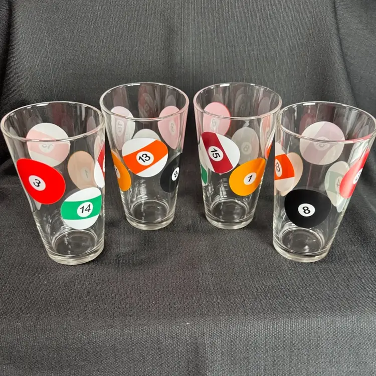 Set Of 4 Vintage Luminarc Billiards Pint Glasses