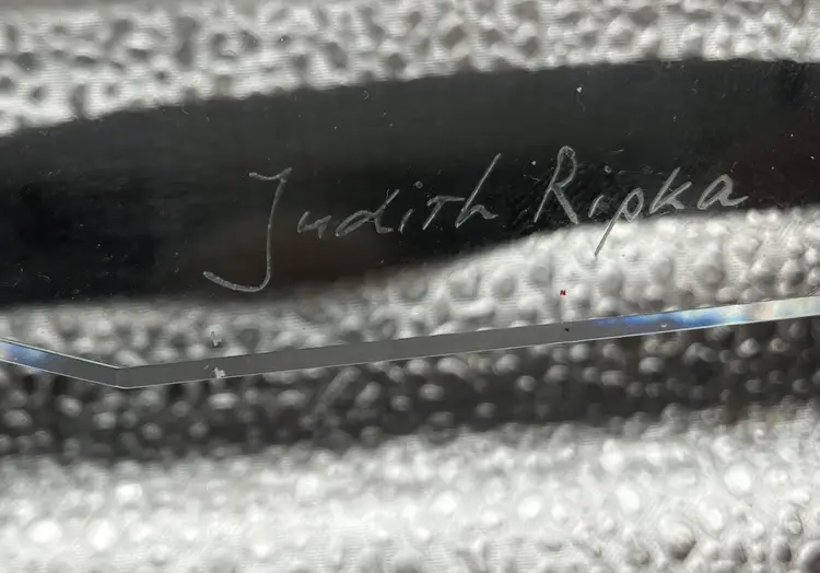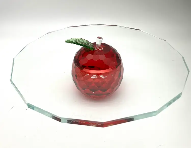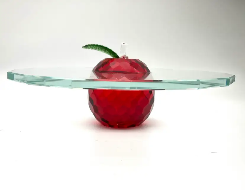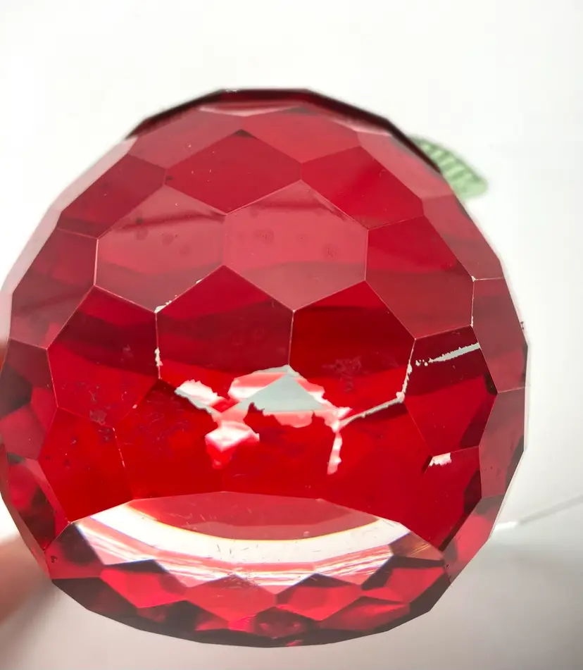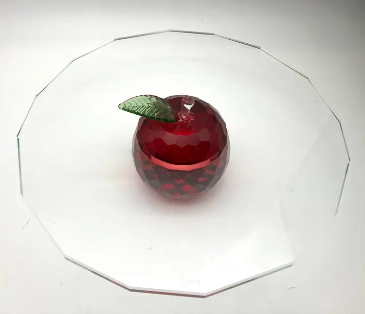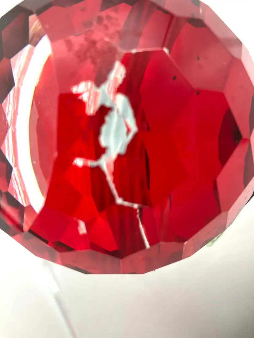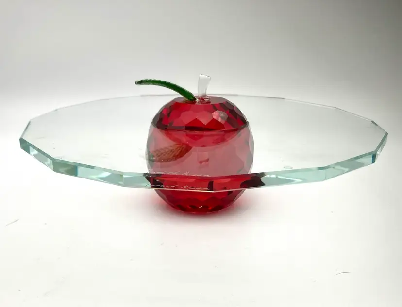 Measures 10” diameter 4” tall. Signed. No chips. Red flashing coming off in places on underside but I didn’t notice it until taking pics. Not noticeable unless looking up from underside. Can’t see at eye level or looking down. Please see pics.