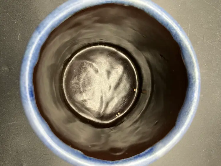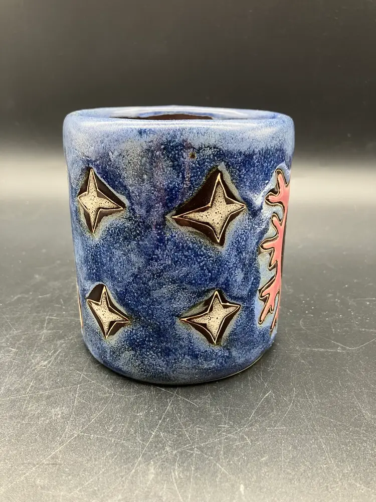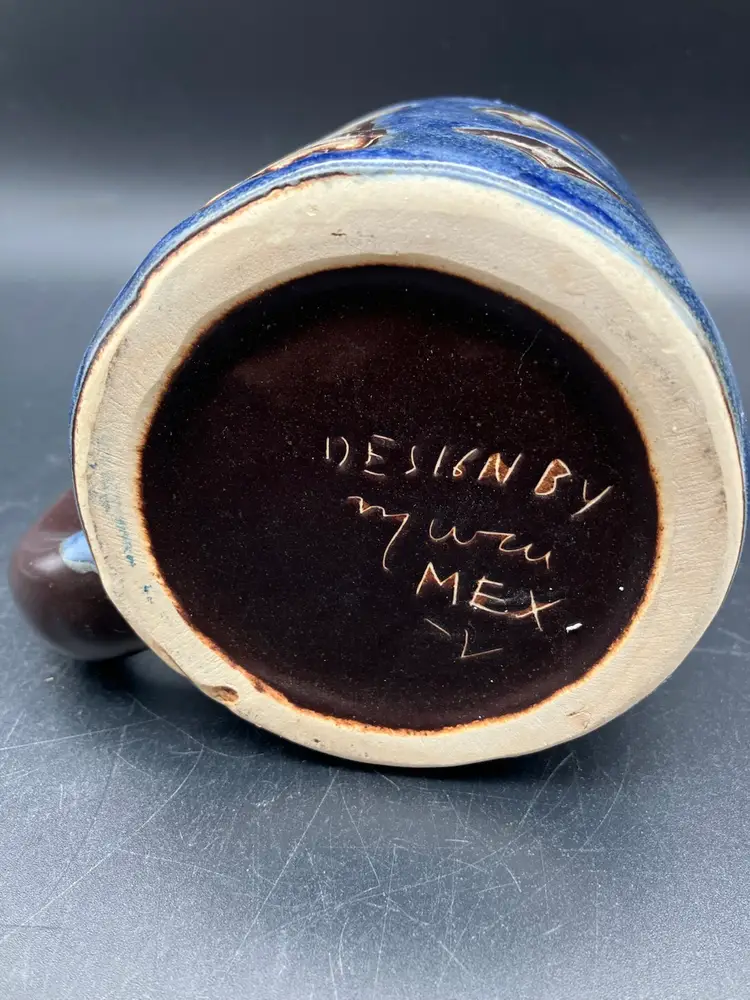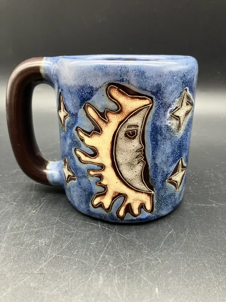 Handmade mug by Mara. Holds 24 oz to rim. Measures 4.25” tall by 3.75” diameter not including handle. Note there are three popped glaze bubbles on the inside bottom of the mug. See pics.