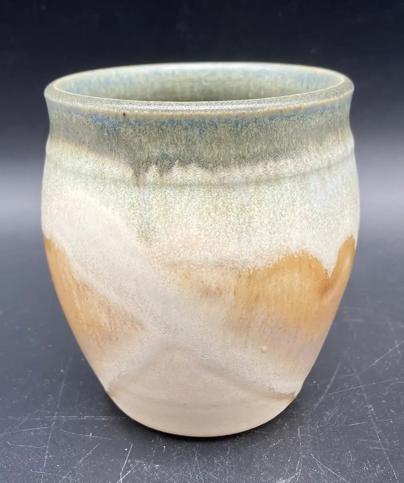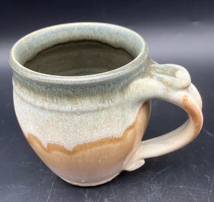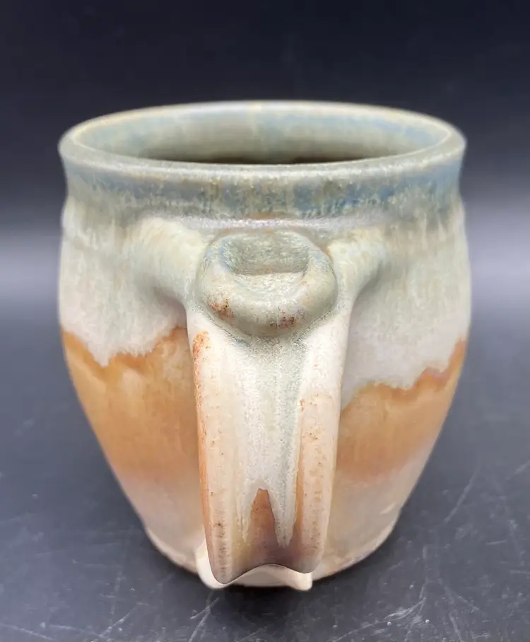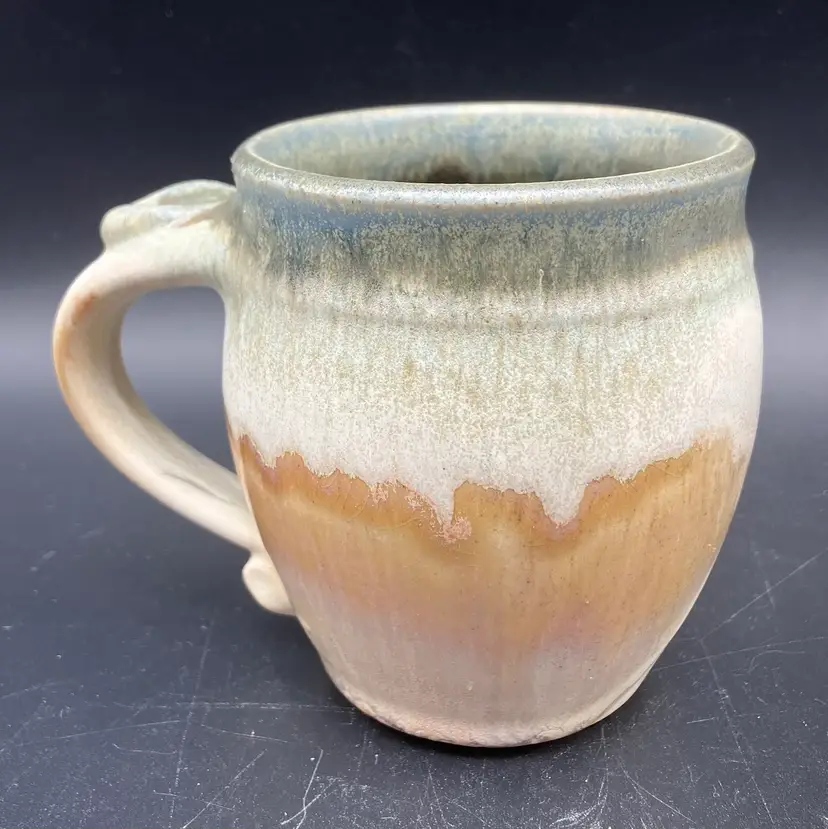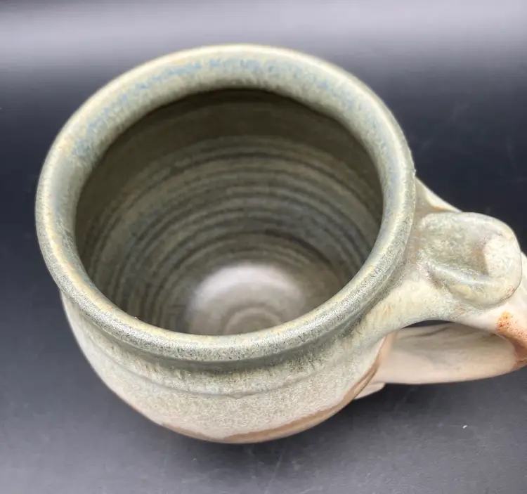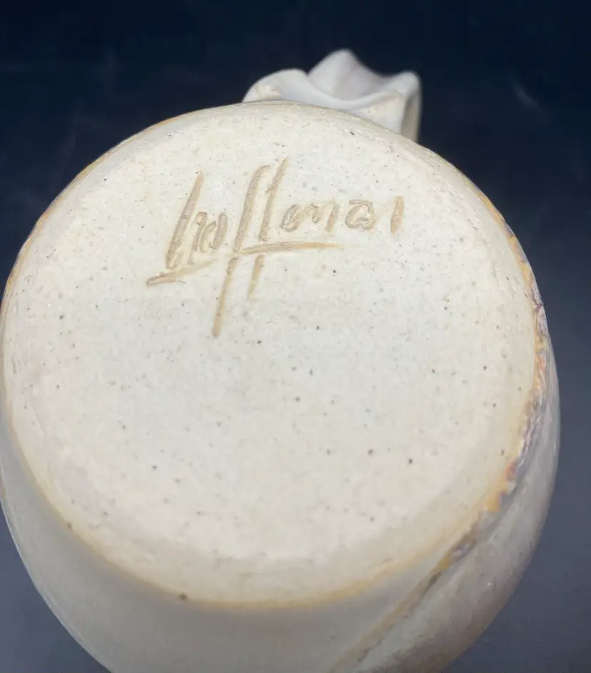 Gorgeous wheel thrown studio pottery mug by David and Sherry Hoffman from the Blue Ridge Mountains of Virginia 12 oz. Feels good to hold. Measures 3.75” tall by 3.5” diameter and 4.5” with handle. Excellent condition. Signed “Hoffman.”