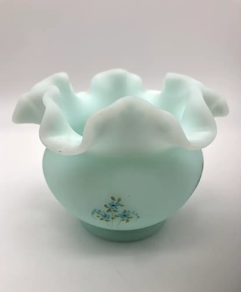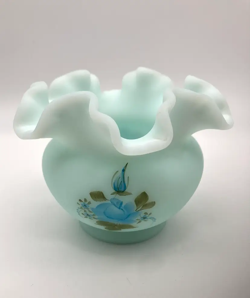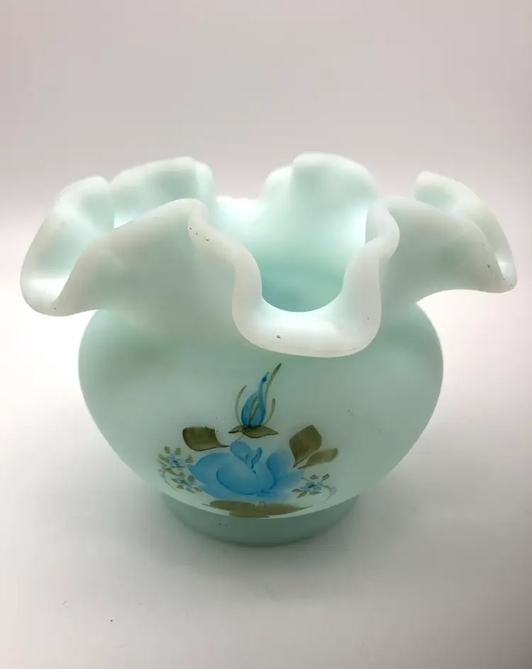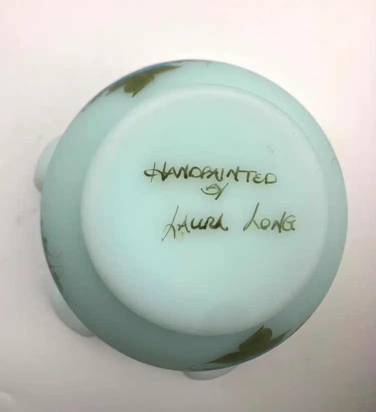 Measures 3.5” tall by 4.75” diameter. No chips or cracks. Handpainted by Laura Long. Great vintage condition.