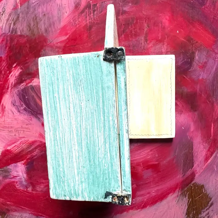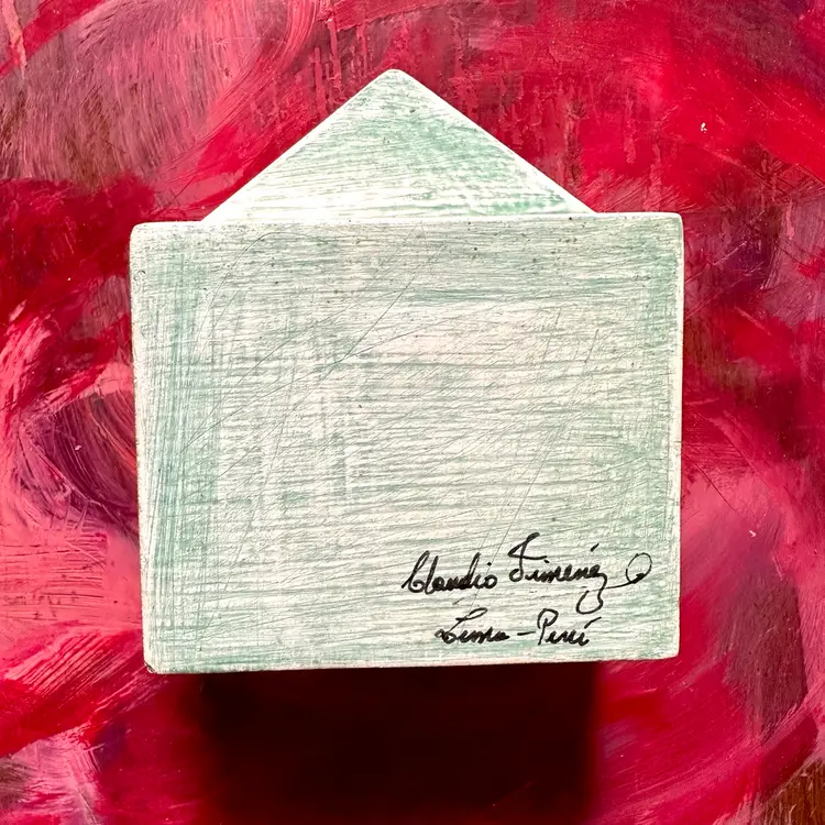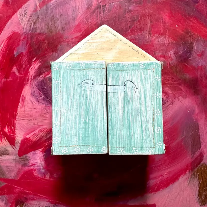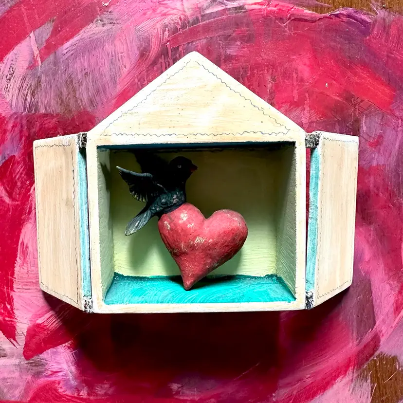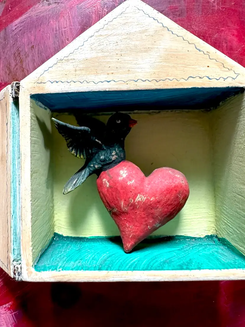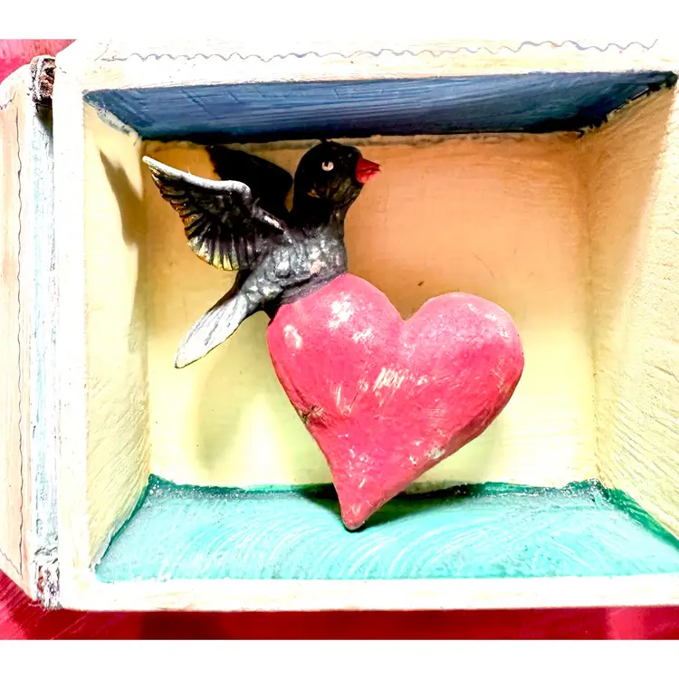 4 inches hinged doors on hand painted box with bird carrying a heart hand made
