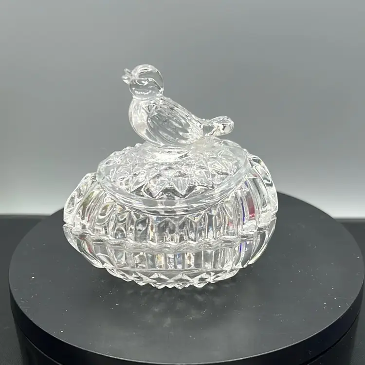 HOFBAUER BYRDES CRYSTAL Cut Glass Bird & Egg Jewelry Trinket Box