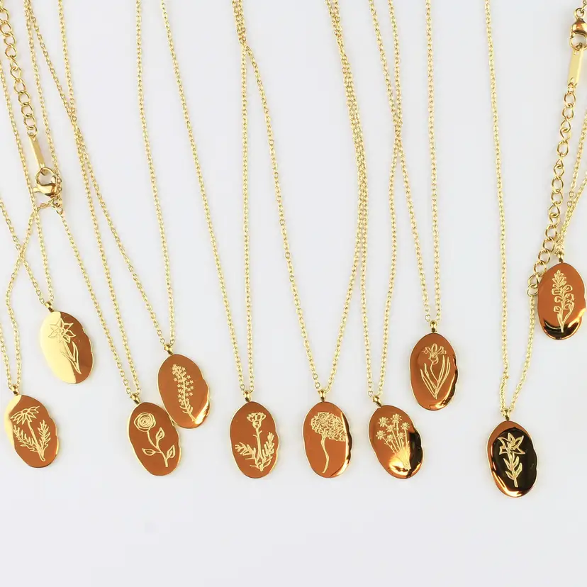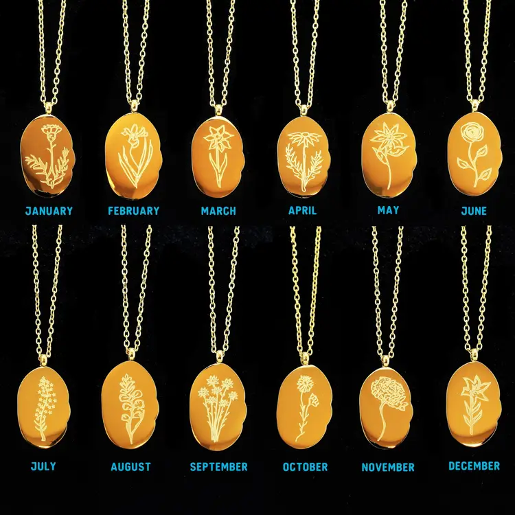 Please send us a message letting us know which month you prefer. Birth Flower Necklace 18k Gold Necklace Chain: 18 inches +2 Inches extension Flower months January to December (12 Necklaces)