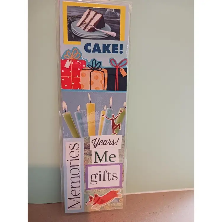 I create bookmarks and vision boards from words and pictures cut out of magazines. Some of the magazines date back to the 1940s! It is my goal to use only recycled found materials, and not buy anything. Occasionally I can't find a word, like NikNax, and have to cheat and type it and print it out.