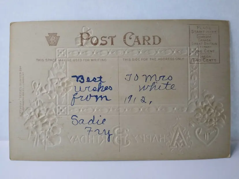Size: Standard (5.5 x 3.5 in) Custom Bundle: No Type: Printed (Lithograph) Year Manufactured: 1910 Number of Items in Set: 1 Signed: No Original/Licensed Reprint: Original Occasion: Birthday Time Period Manufactured: 1900-1919 Unit of Sale: Single Unit Era: Pre-War (Pre-1914) Artist: Unknown Country/Region of Manufacture: United States Material: Paper Theme: Animals, Art, Flowers & Plants, Greetings, Farm Features: Divided Back, Embossed Subject: Flowers Postage Condition: Unposted Brand/Publisher: J Marks