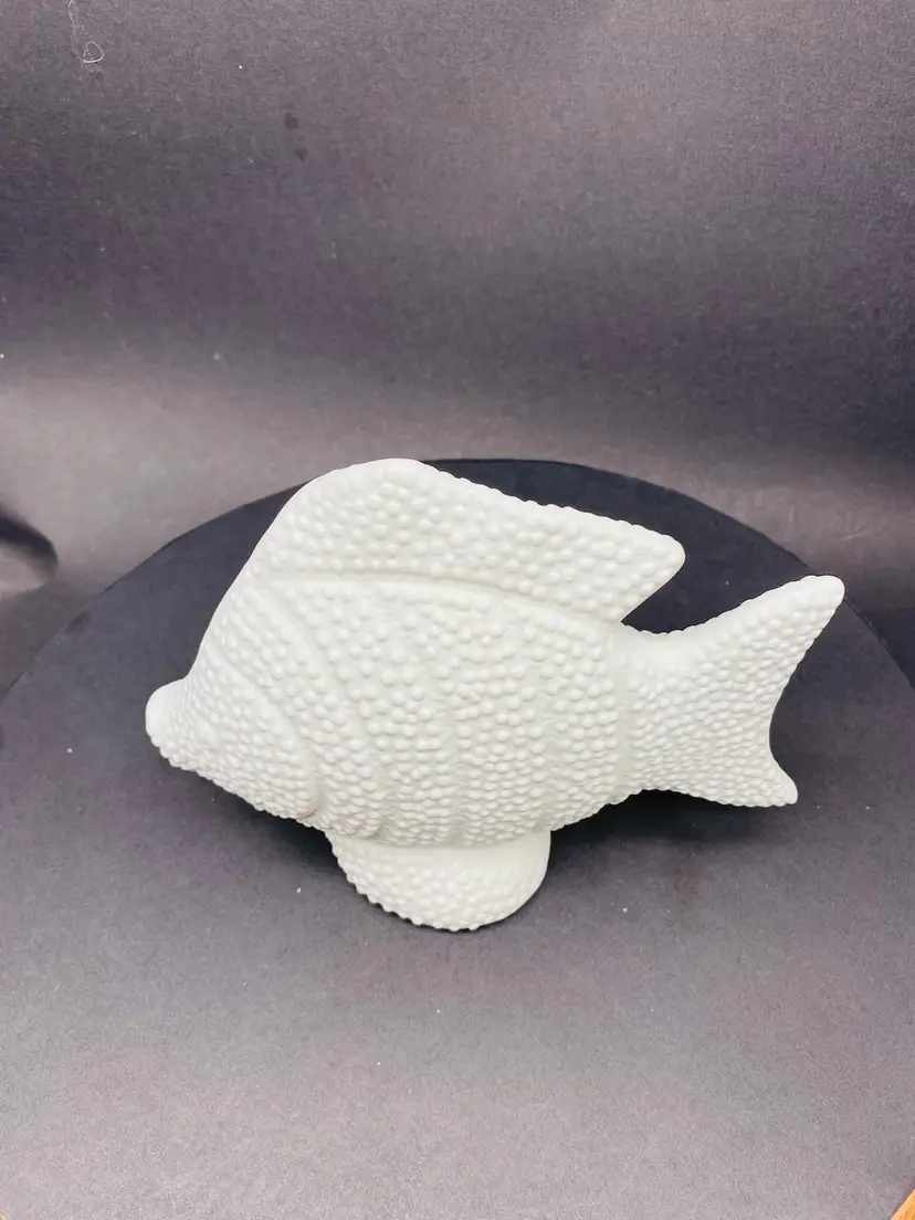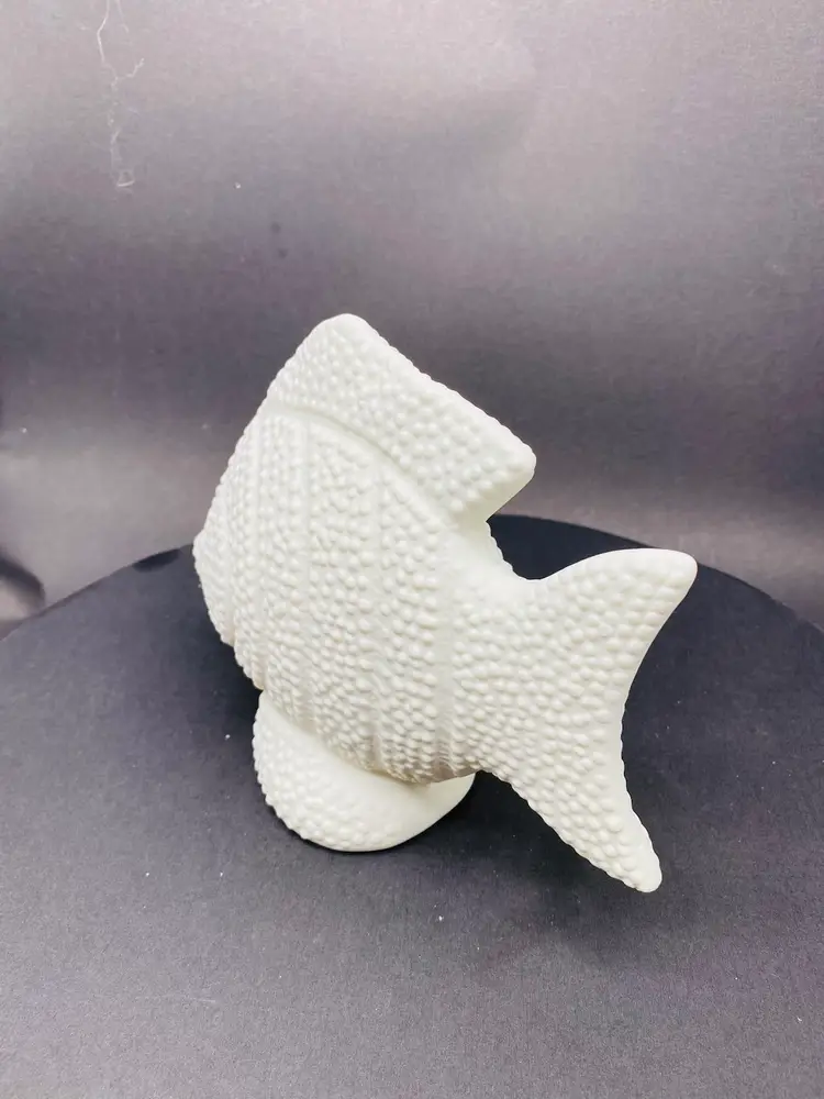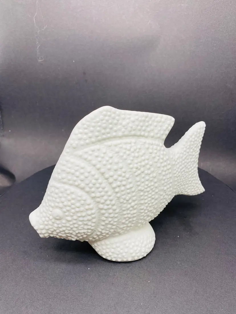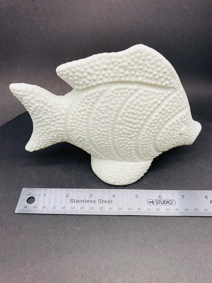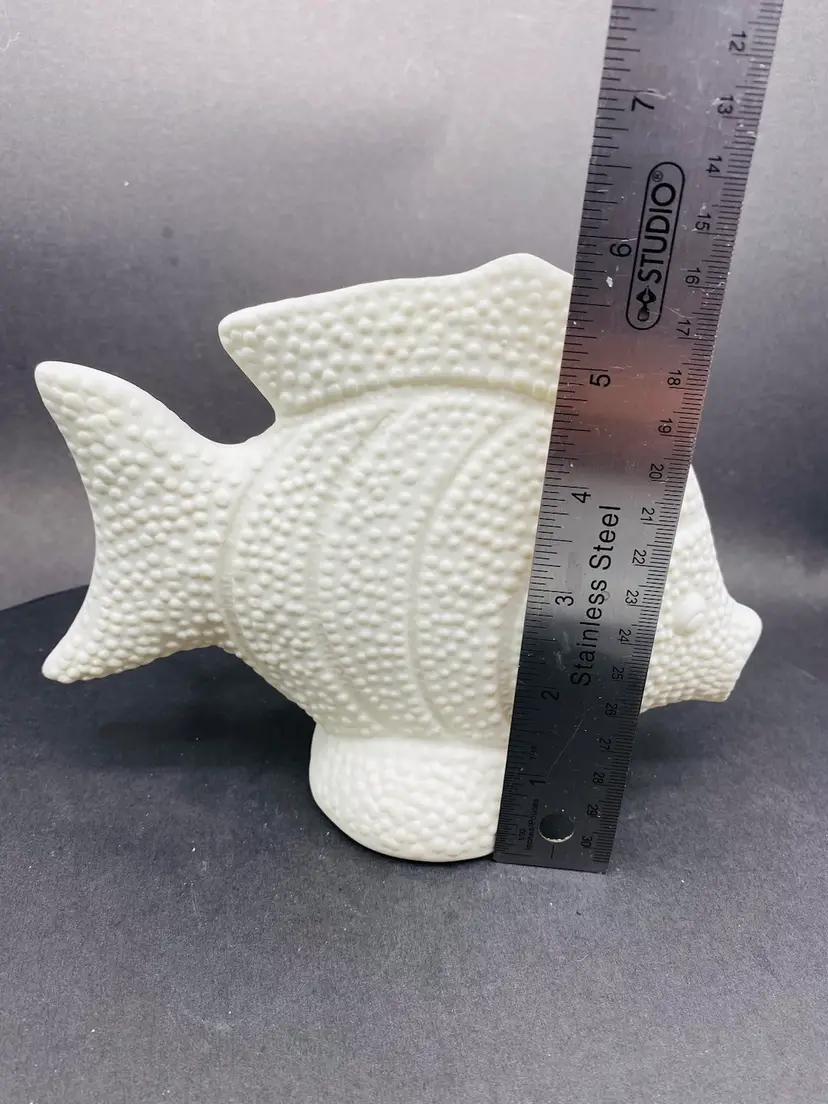 Add a touch of tropical charm to your space with this Bisque Ceramic Fish Decorative Figurine. Crafted from ceramic, this 8-inch white figurine features intricate details that bring the fish to life. Perfect for collectors or as a statement piece in any room, this figurine is versatile for all occasions. Ideal for those who appreciate unique and elegant decor, this figurine is a must-have addition to your collection.