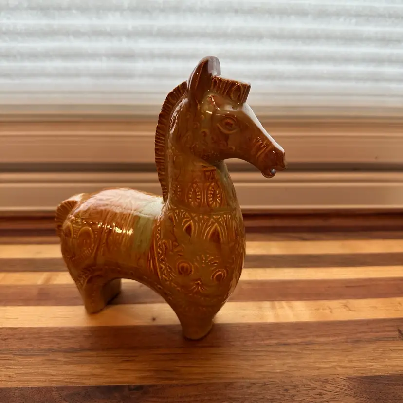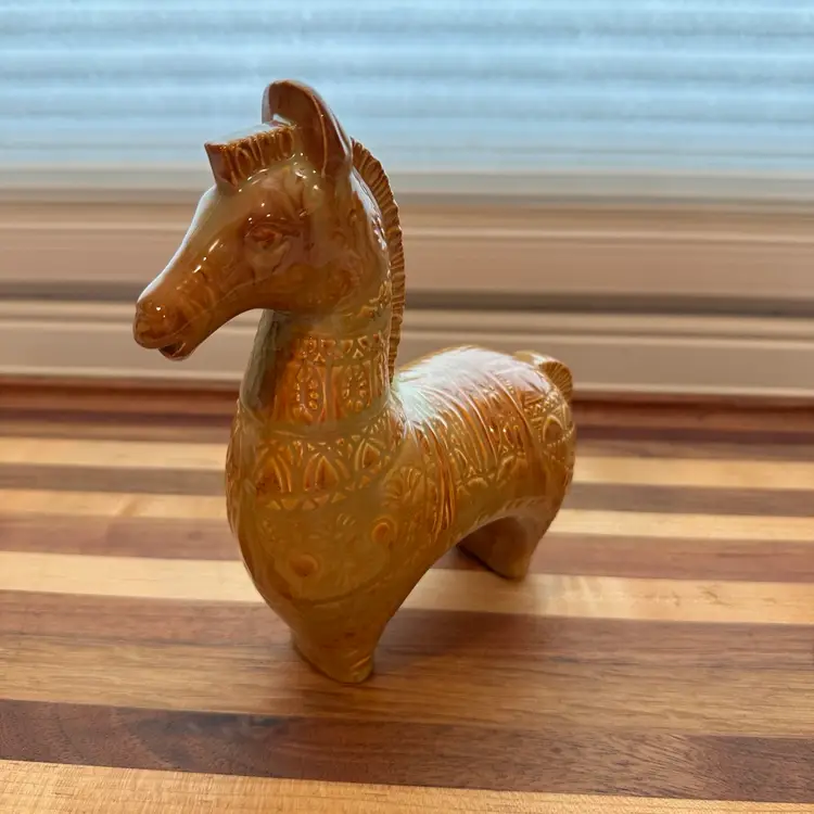 Gorgeous Bitossi Style Brown Tan Horse Figurine MCM Style Vintage Ceramic Porcelain