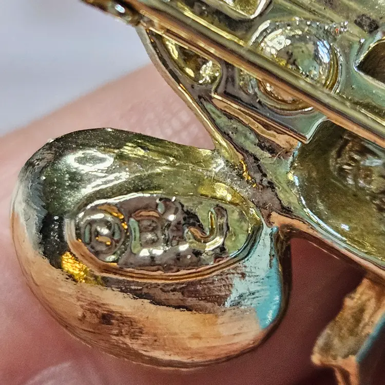Some paint wear and missing stones Unique pin. approx 2 1/4"