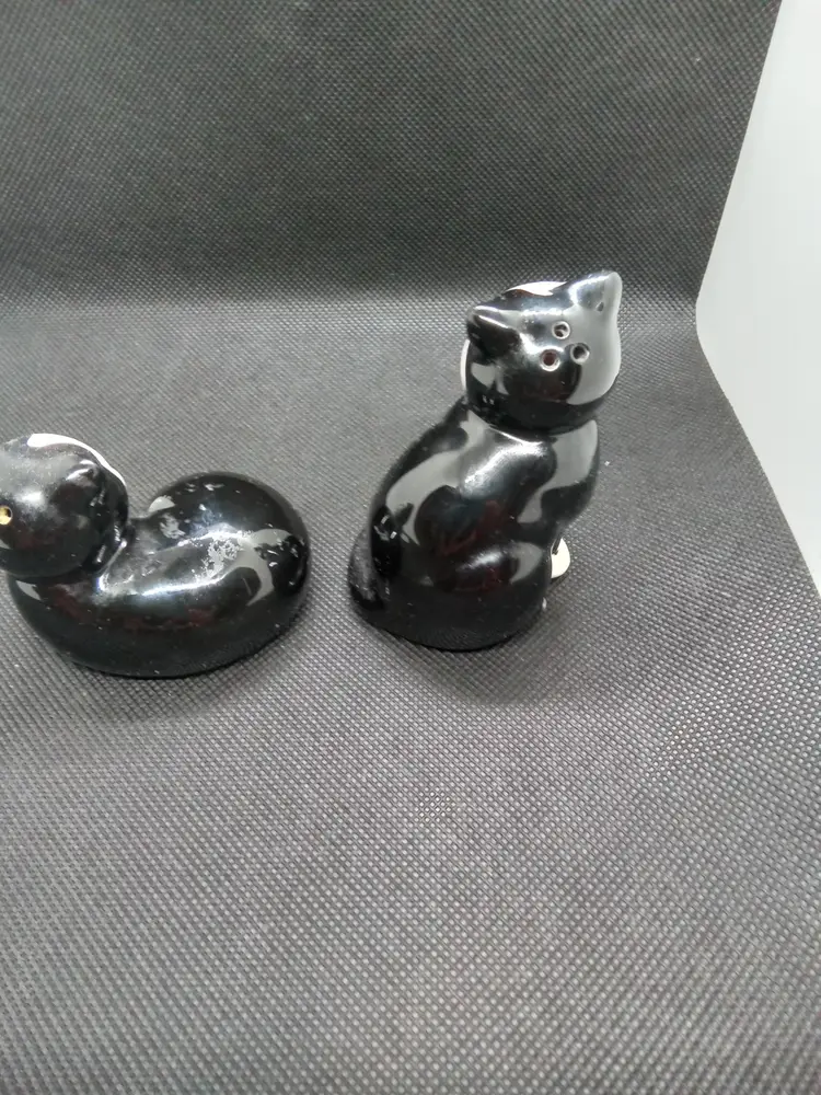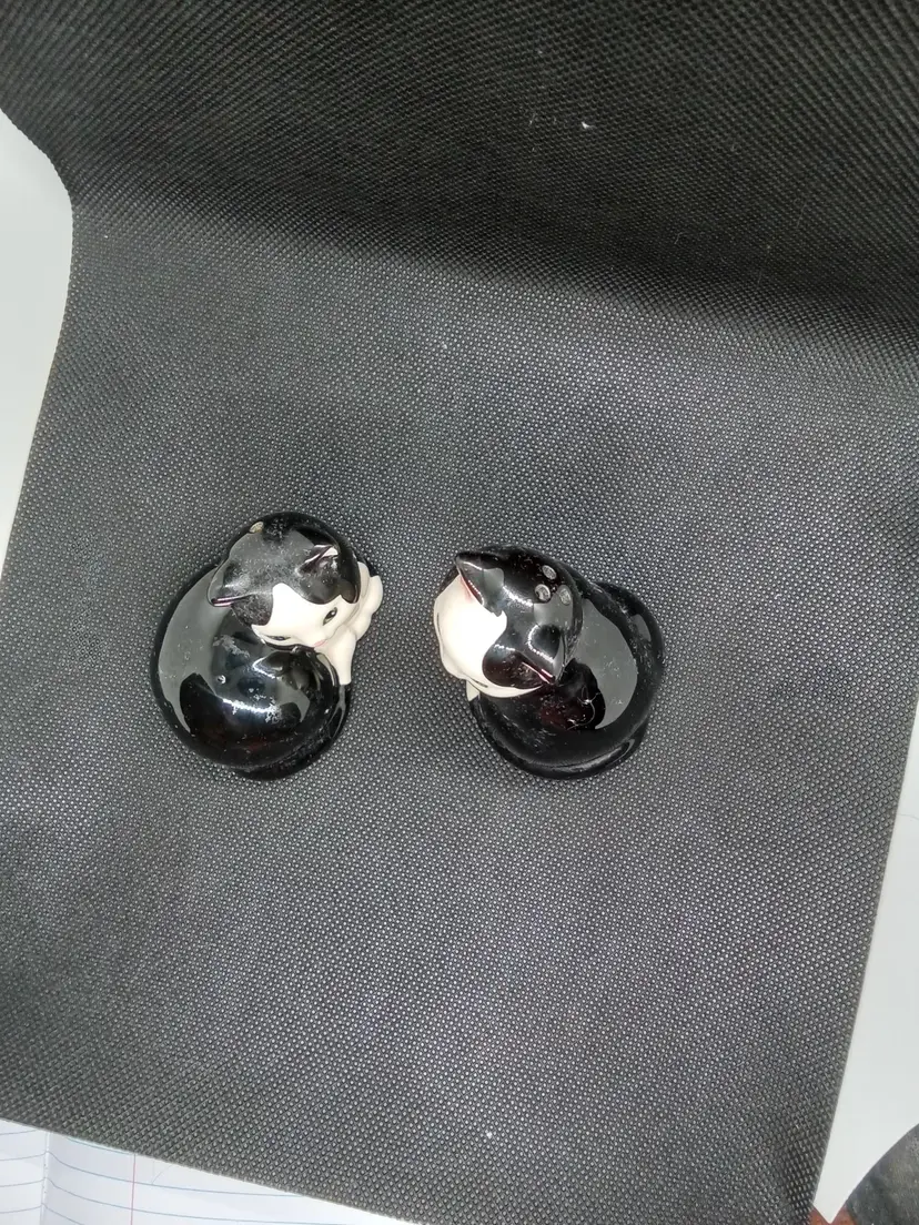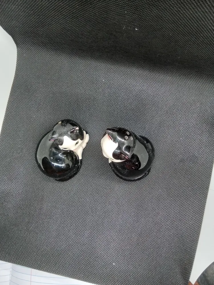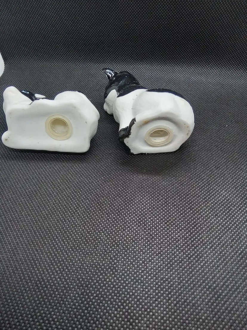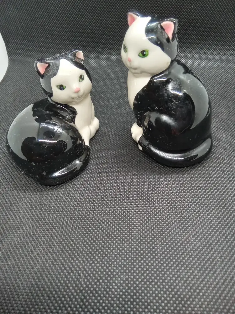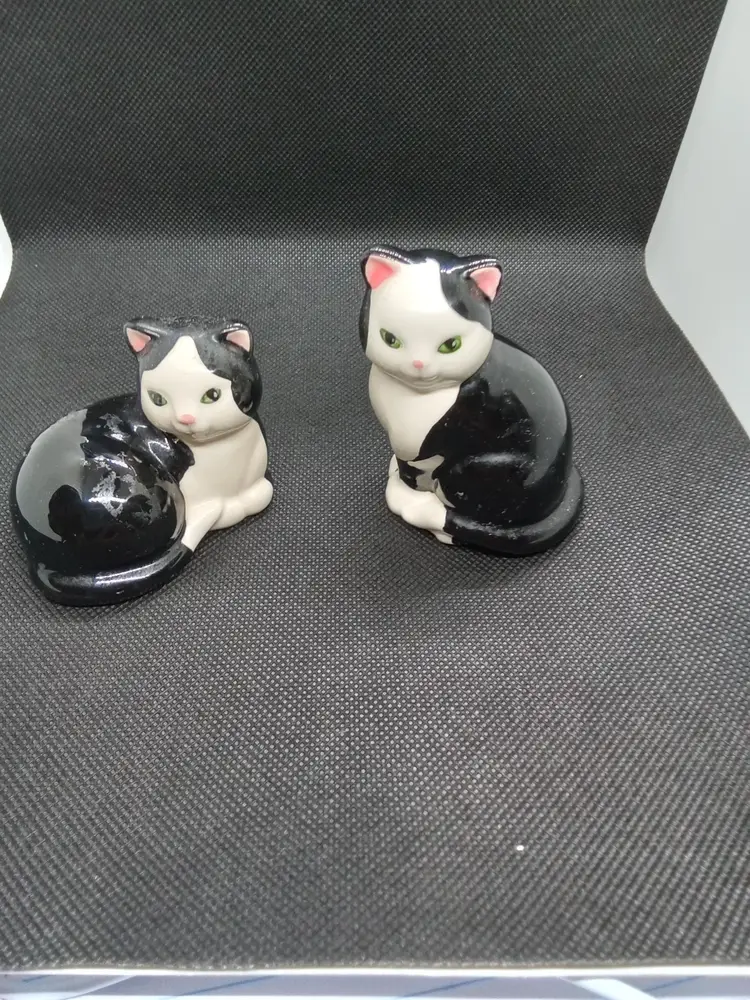 Charming set of two black and white cat figurines. Perfect for cat lovers and adding a touch of whimsy to your home decor.
