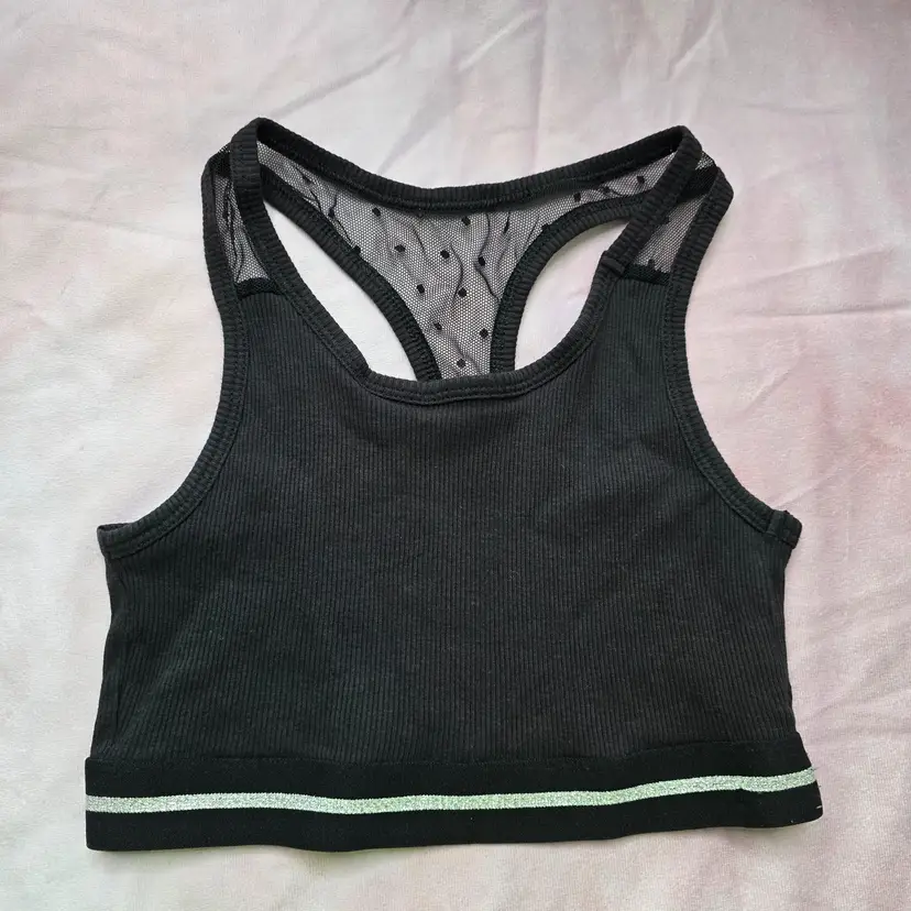 Waist Measurement: 11" Black, mesh, racerback style, pull on, no padding, ribbed SKU: 00227 ⭐️Pre-owned items may have minor or major defects. Smoke-free and Pet-free. The product shown is the exact item you will receive. Please note that colors may appear slightly different due to variations in device resolutions.