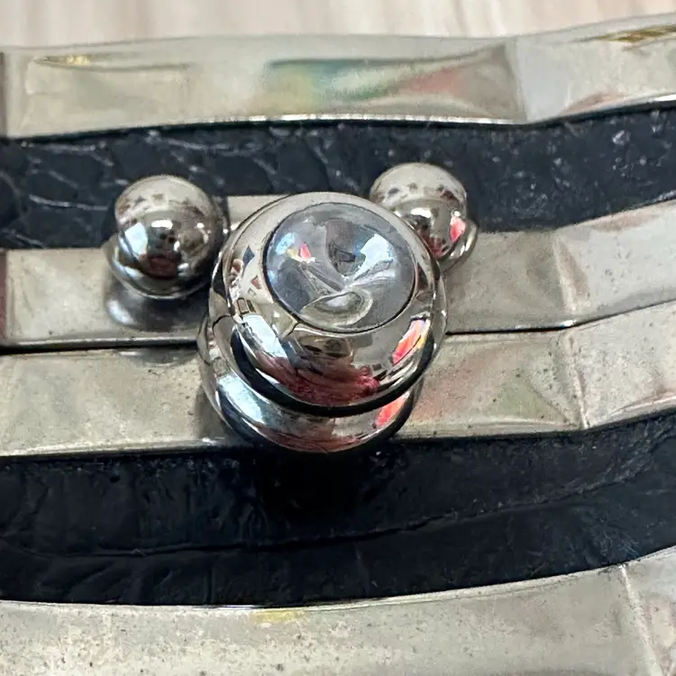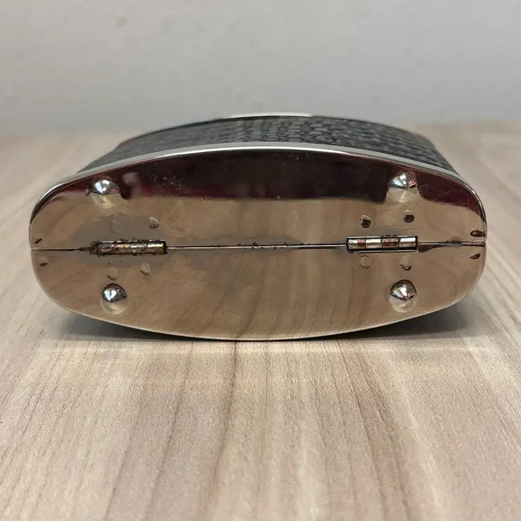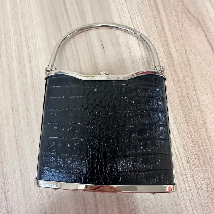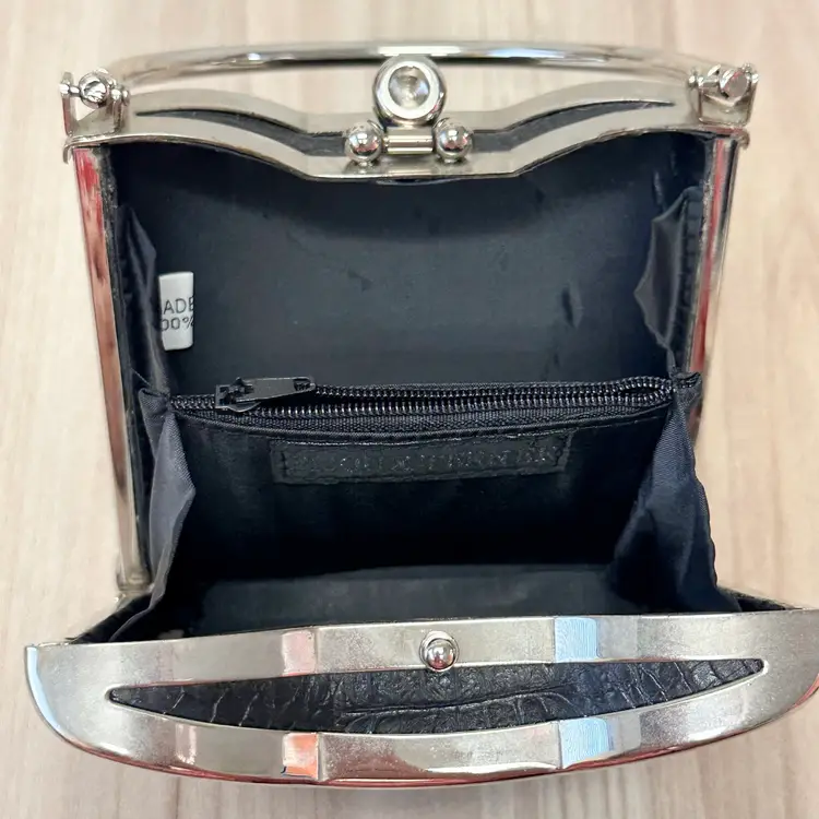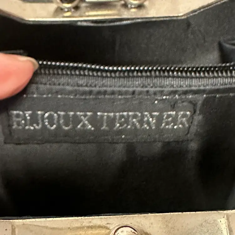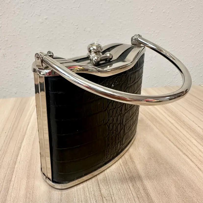 This listing is for this gorgeous Black Bijoux Terner Hardshell Mini purse. It has silver tone hardware and a snap closure. This vintage piece from the 1980s features a faux crocodile design in black, adding a touch of sophistication to any eveningwear outfit.