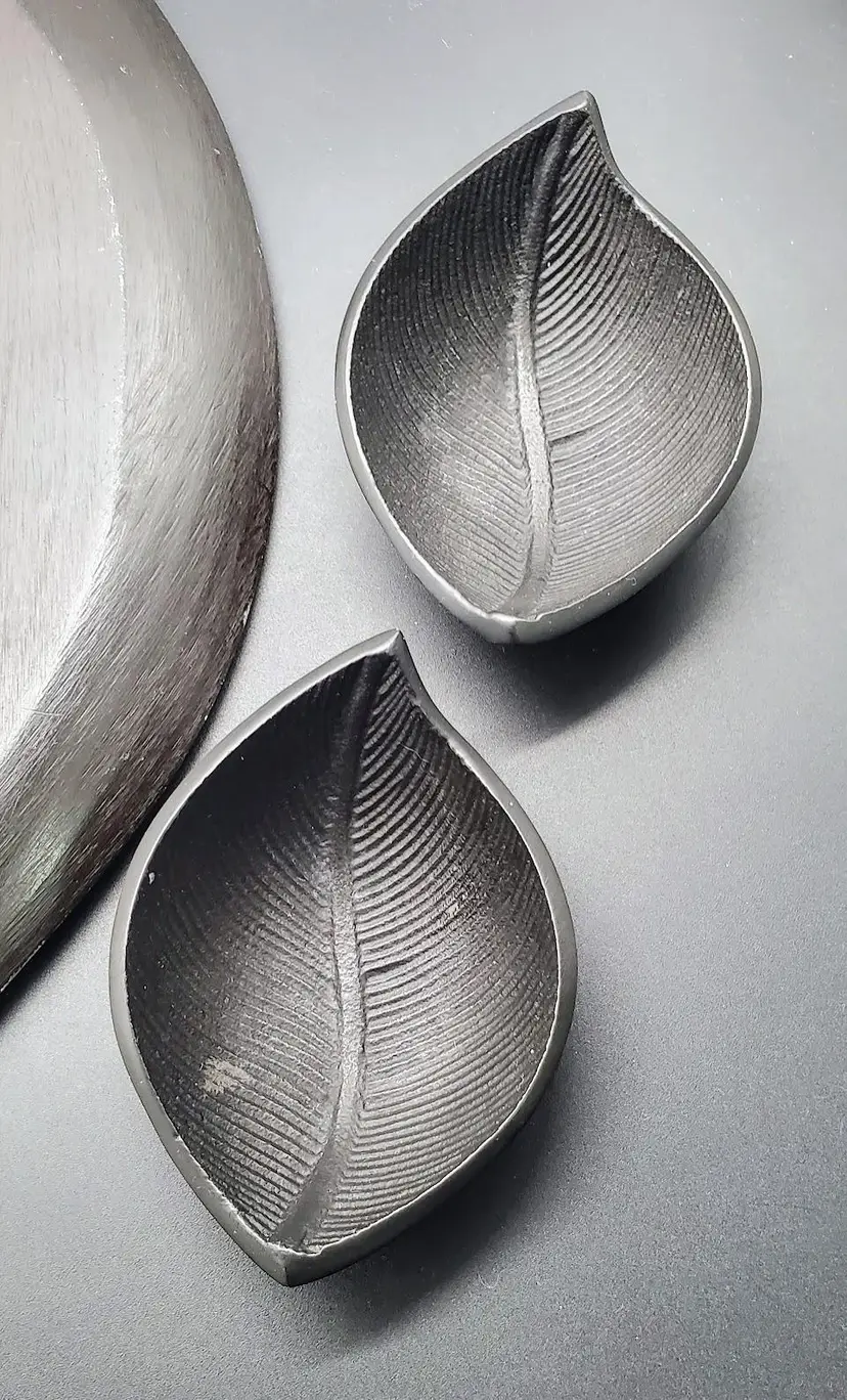 Black Ceramic Textured Leaf Tray & Bowls 13"