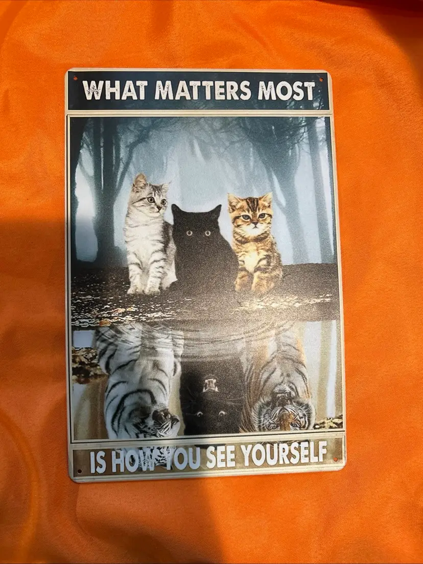 Black Cute Cat Metal Retro Tin Sign What Matters Most is How You See Yourself Vintage Inspirational Sign for Home Coffee Wall Decor Cafe Decorative Wall Signs Motivational Wall Art 8x12 Inch