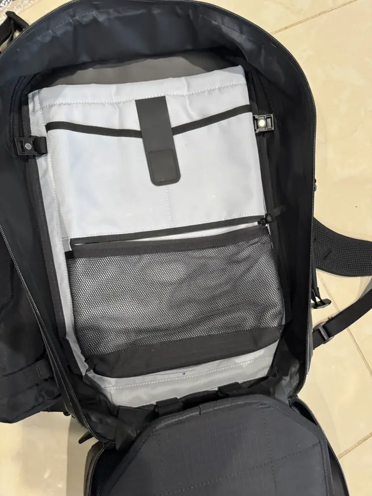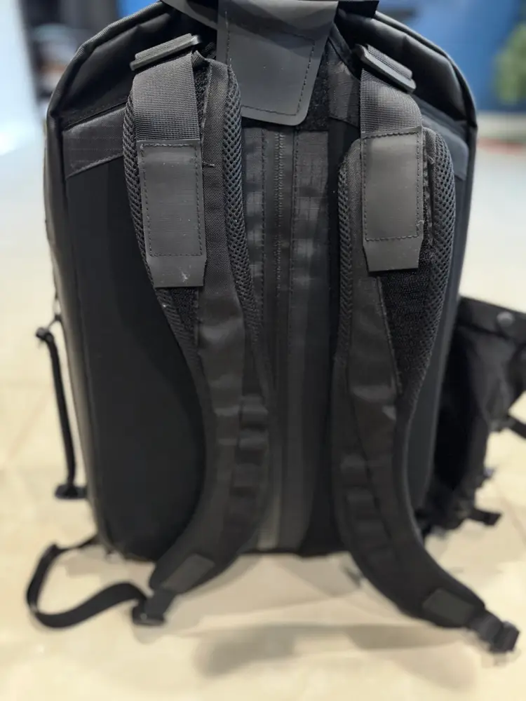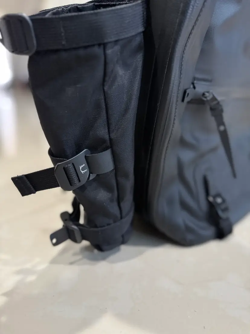 Slick weather resistant, premium materials. Used as an EDC bag to work and received multiple inquires on this unique and urban look. Overall in great condition with some normal wear. Comes with the water bottle holder and the attachment straps across the bottom (sold separately).