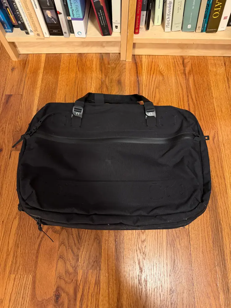Incredibly overbuilt, 3-way backpack, made from Black Ember's original Cordura Recor RN66 fabric. Slightly used, with a few external scuff marks, but otherwise unblemished. Newer version priced at $375.
