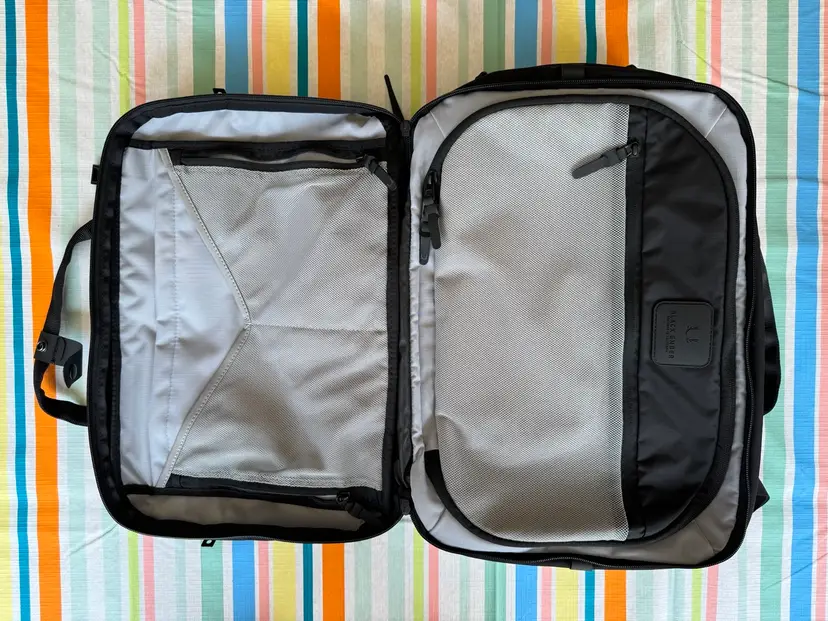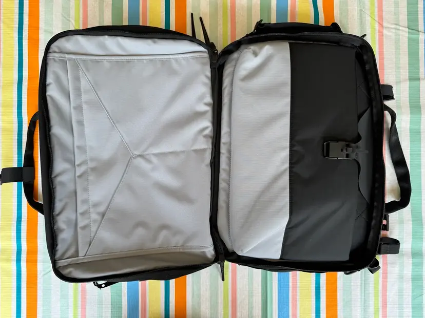 Like new Forge Max bag, jet black with maglock compression straps and carry handle attachments. Carry capacity of 20L, expandable to 30L. Purchased January 2024, lightly used 3-4 times for road trips to a neighboring state, just wasn’t quite what I was looking for but was past the return period by the first use. May come with free Dalmatian hair, but I’ve tried to get it all off, haha