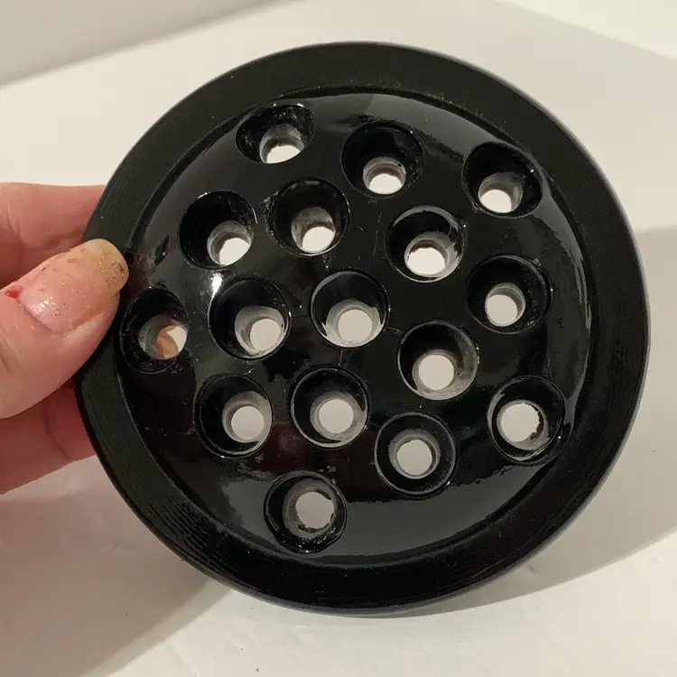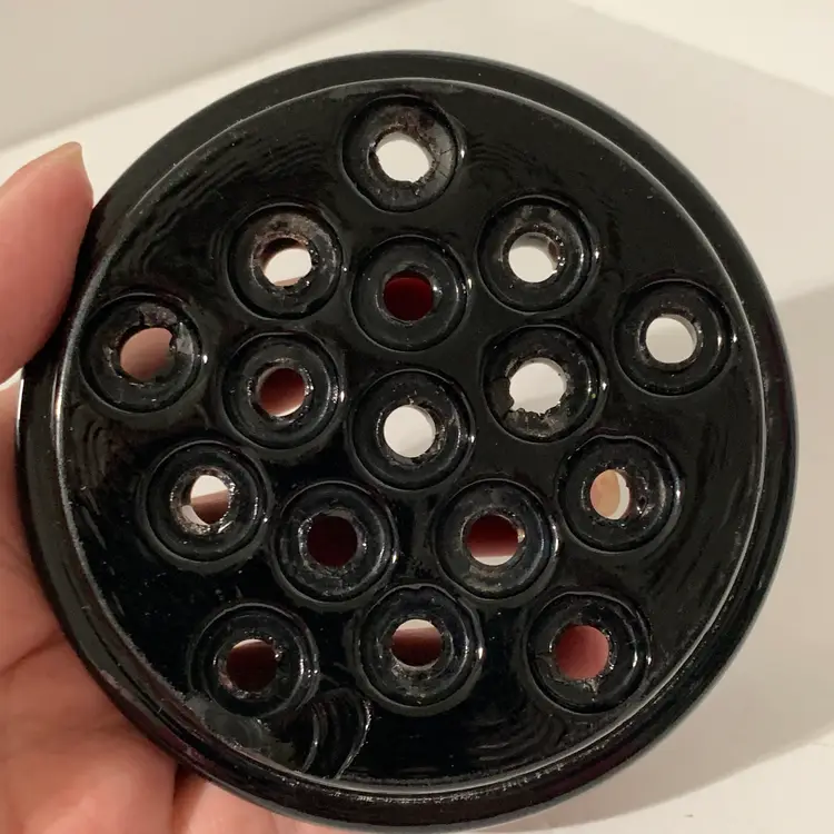 This makes a great display for marbles! There are no cracks but there are two chips on the top and one on the bottom. Please see all of the photos. Measures 4 inches across and 1 1/4 inches tall. Weighs 13 ounces. If the actual postage ends up being less than what you paid, you will be refunded for anything over one dollar.