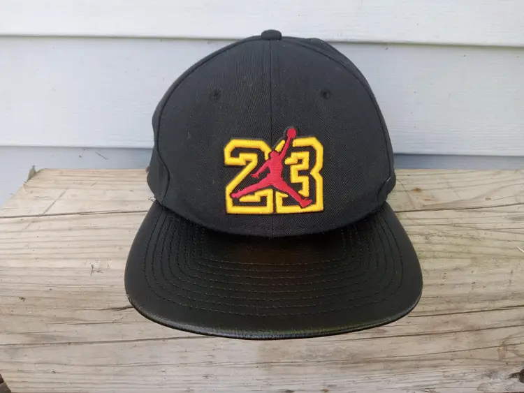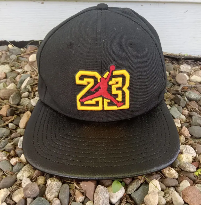Black Jordan Jumpman Gold 23 Flat Brimmed Snap Back Hat. One Size Fits Most. Very Good Condition With No Flaws.