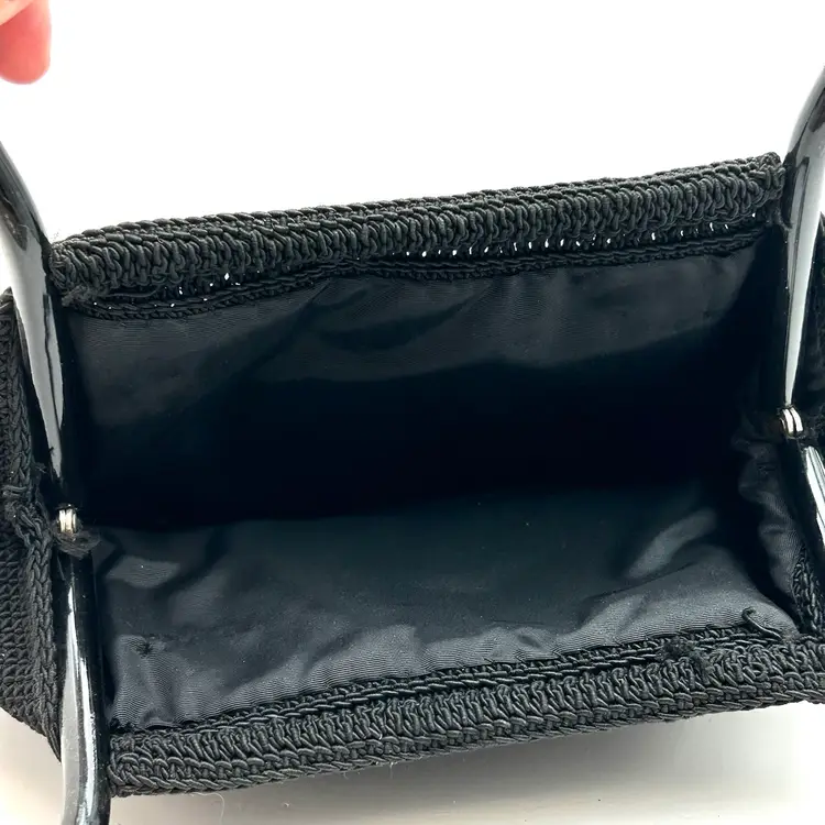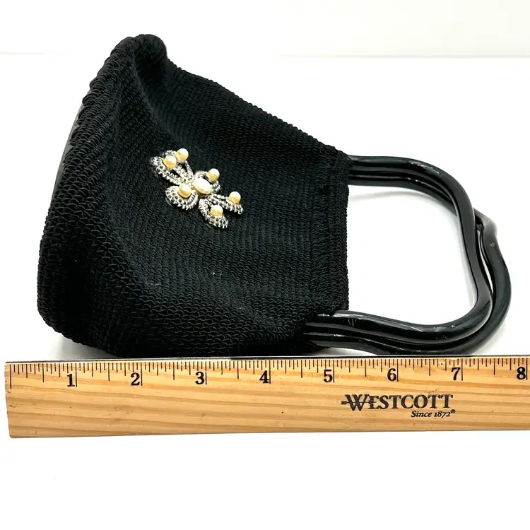 As shown 8 inches tall including handles and 9.5 inches long Minor wear to the bag, clean interior