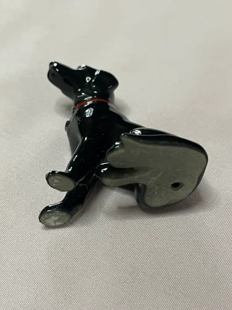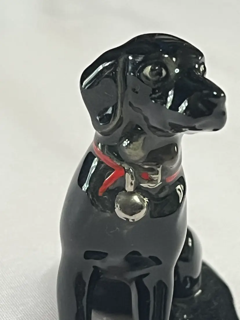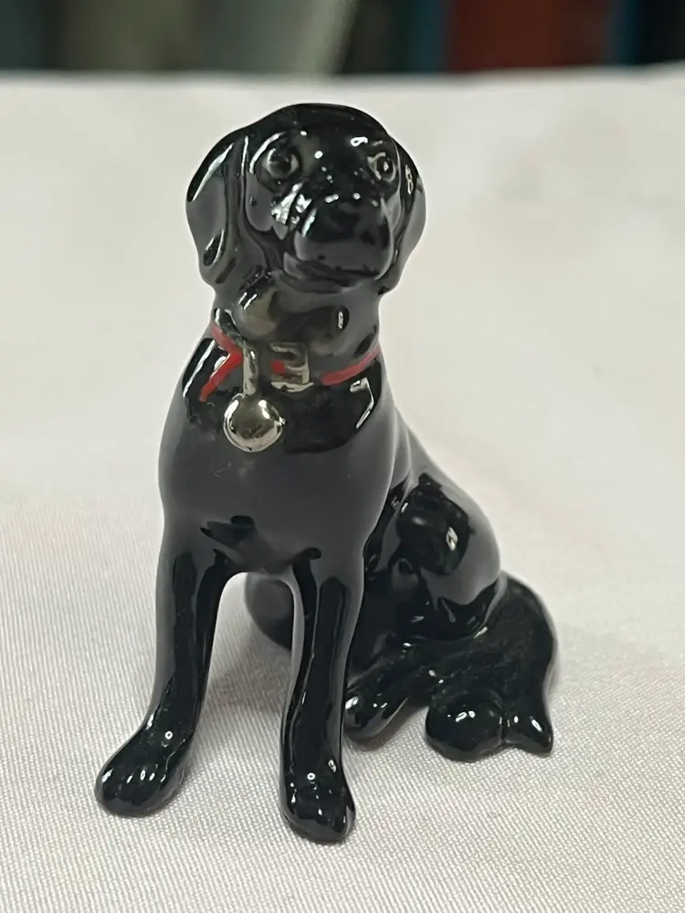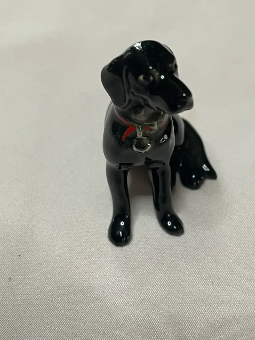 Hagen Renaker Black Lab Dog Figure Approximately. 2” tall X 1.25” wide X 1.75” long Great condition. No chips cracks or crazing. His neck area is a little discolored from the manufacture process but over all amazing piece