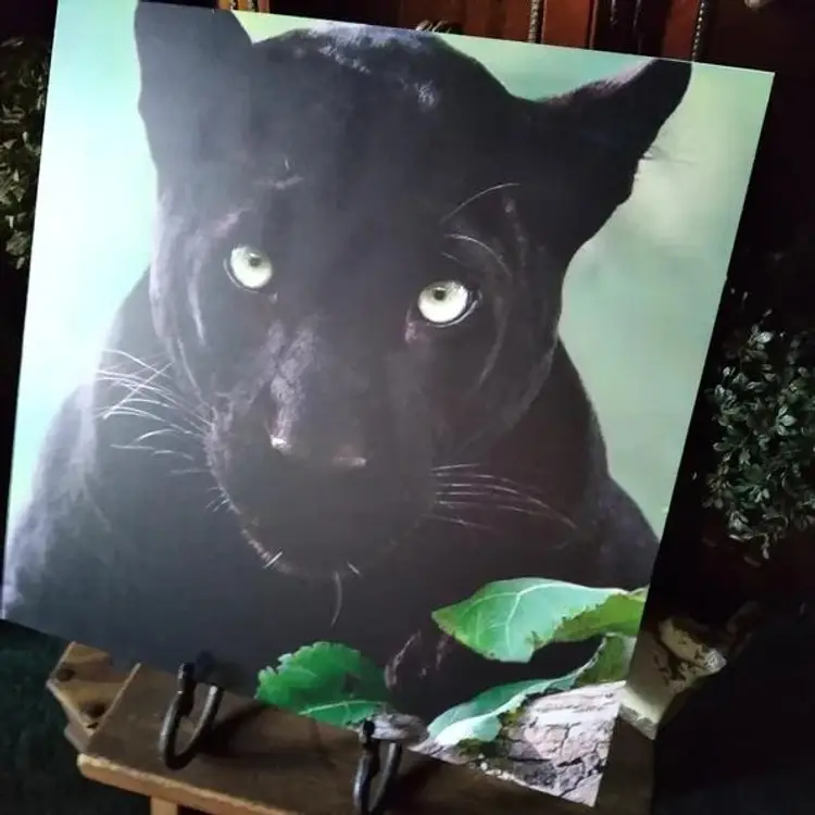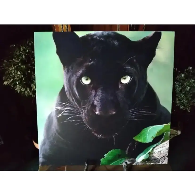 It's a beautiful black panther on an 1/8-inch-thick poly-metal sign with High-Performance digital print applied on one side and can be drilled with holes or use tape for wall mount. Would look great hung anywhere. Nice as it is or set it in a nice frame. All items sold as is and as pictured. Please do your own research and see the beautiful color photos in each listing. Please ask if you have questions before your purchase, and Please... be sure to check out my other ads and add me to your fave-list for more signs in the future.