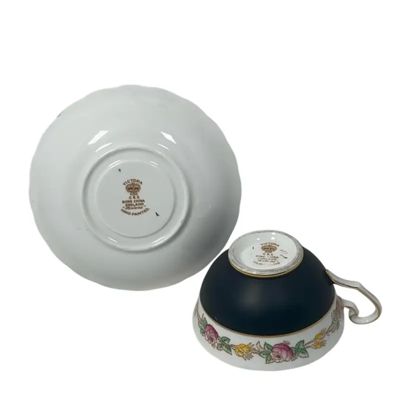 Victoria hand painted “Helene” pattern note small rough area on saucer not a chip it’s glazed over …