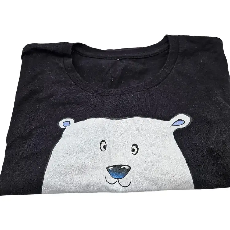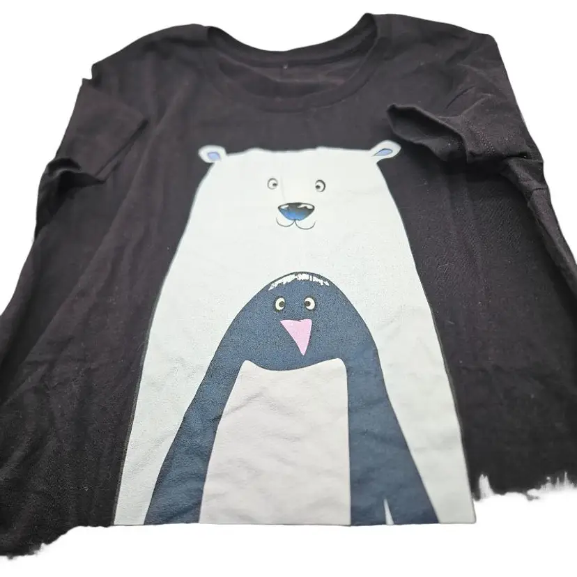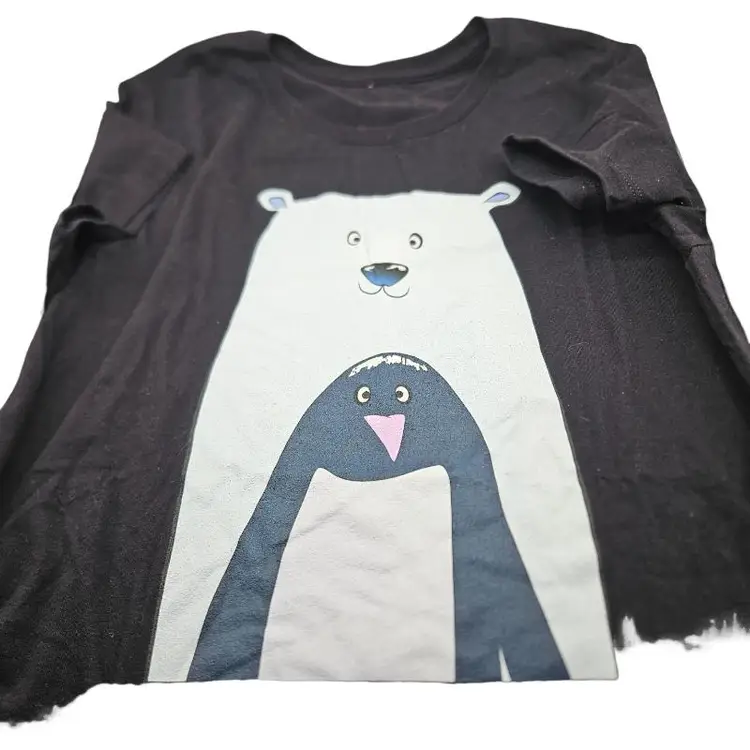 Fun graphic tee featuring a polar bear and penguin. Perfect for casual wear.