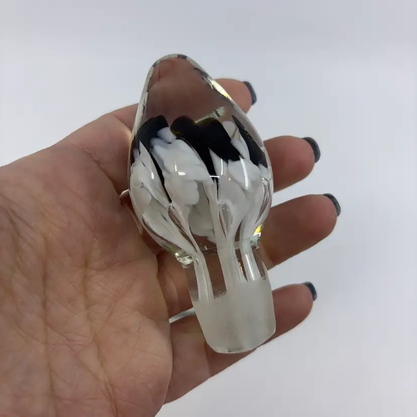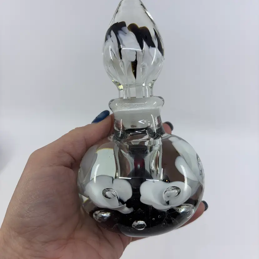 Black Trumpet Flower Joe St. Clair Signed Art Glass Perfume Bottle 6”