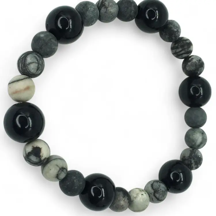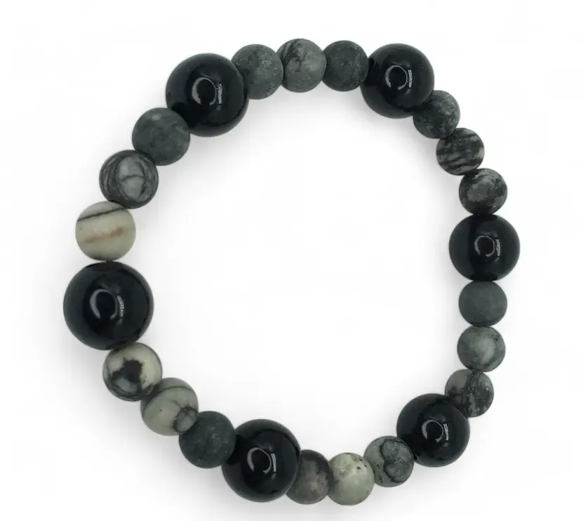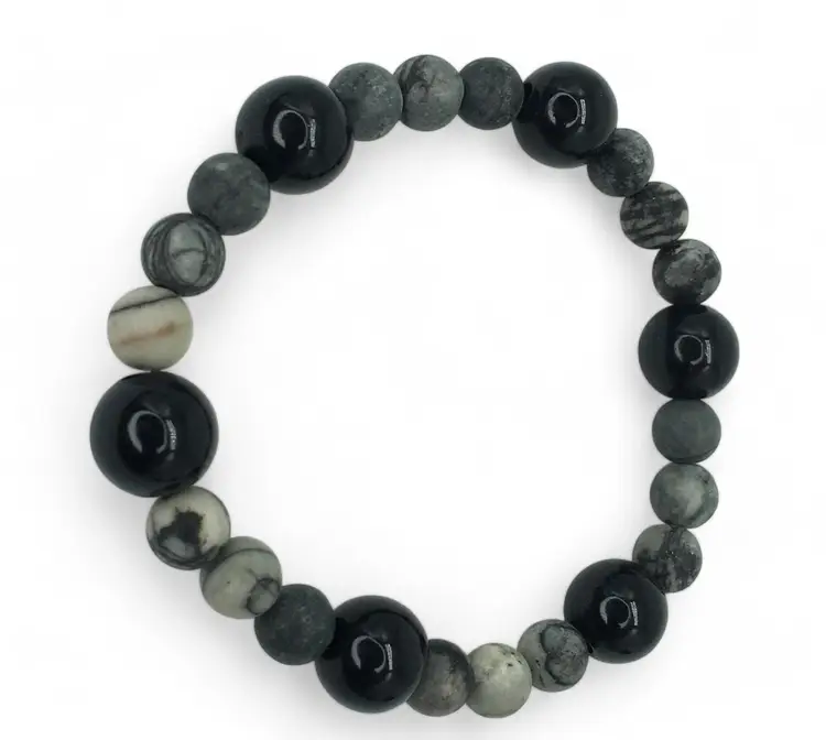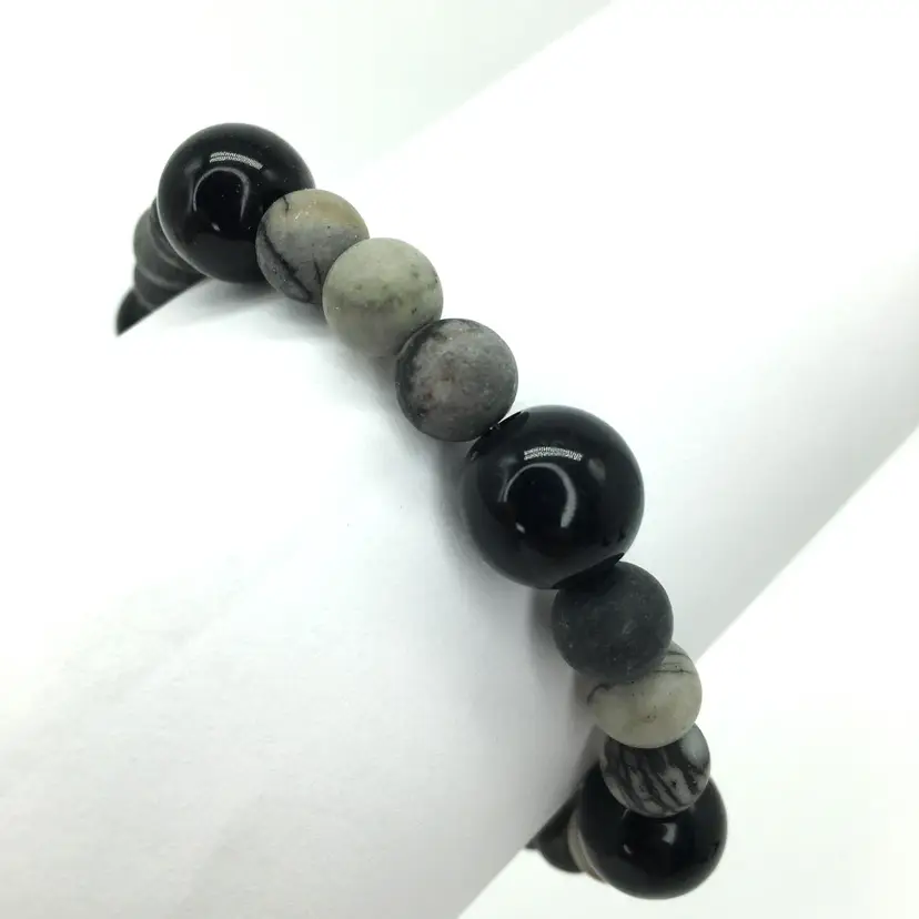 ✨ Details: ** Material: Natural Quartz & Black Agate Beads ** Bead Sizes: Approx. 8mm (quartz), 10mm (black agate) ** Style: Stretch Bracelet – one size fits most (about 7"–7.5") ** Color: Black, Gray, and Natural Stone Variations ** Unisex design – perfect for men or women