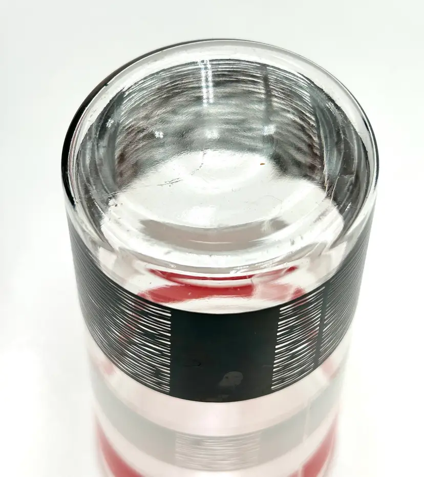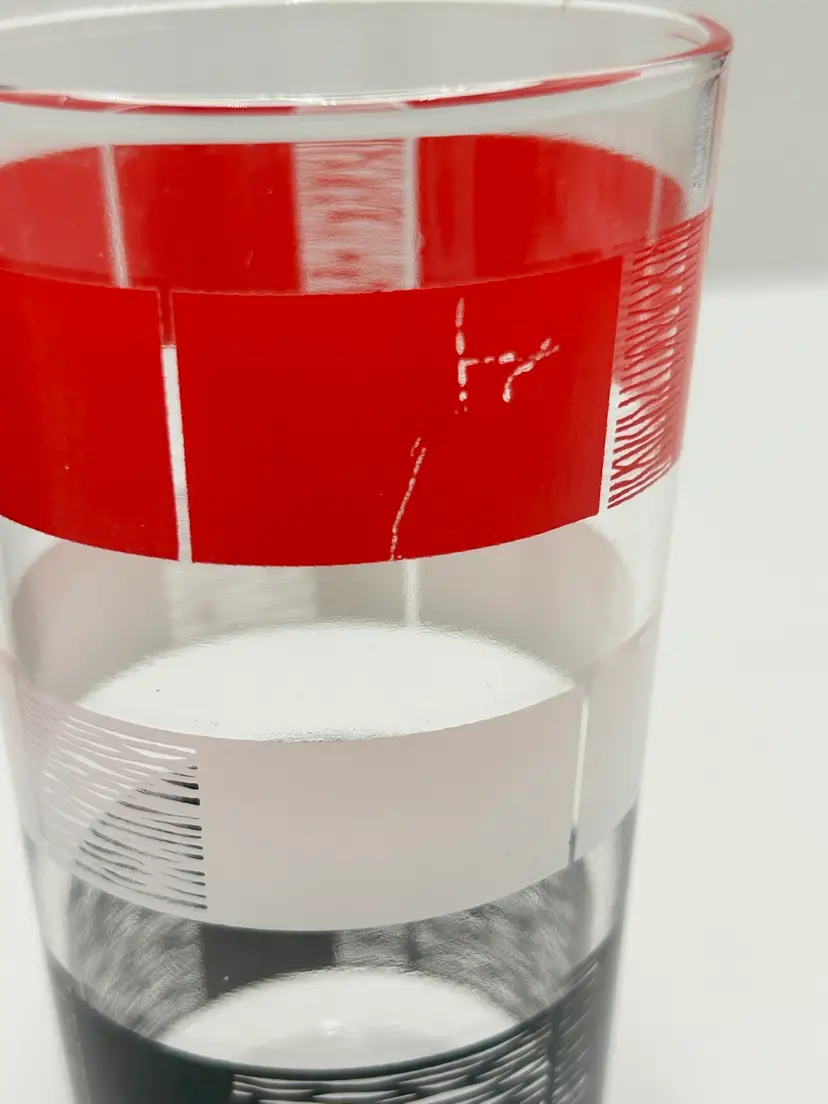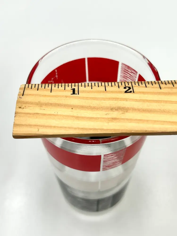 As shown Just over 4.5 inches tall and 2.5 inches wide Some paint loss to the stripes but no chips or cracks