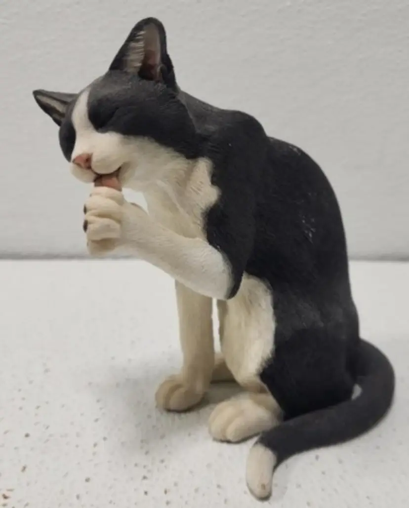 Beautiful hand made cat figurine Vintage looks very realistic Approximately 6.5 x 5.5 inches