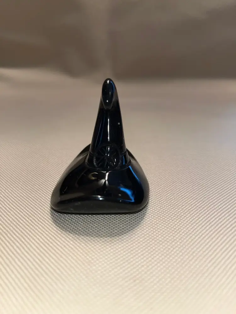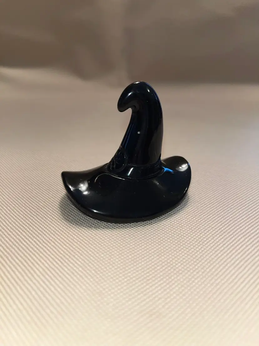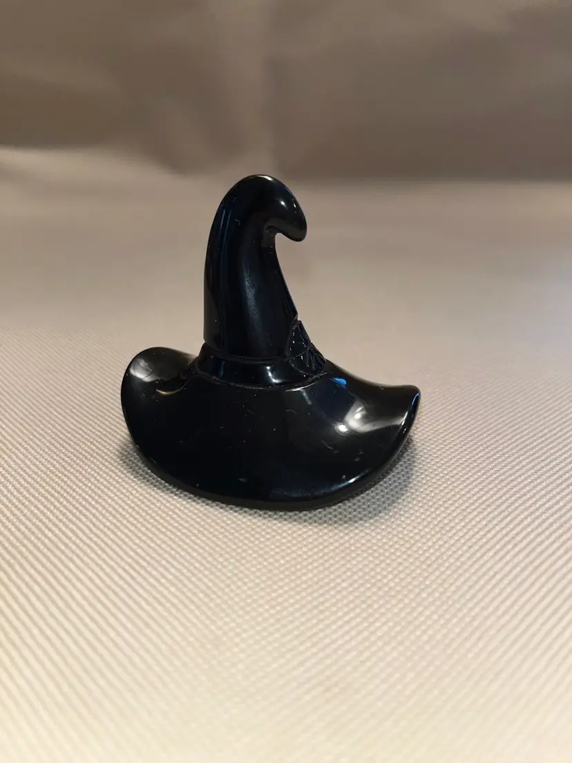 Black witches hat measuring 2” tall and 2 1/3” long. Super cute ready for spooky season.
